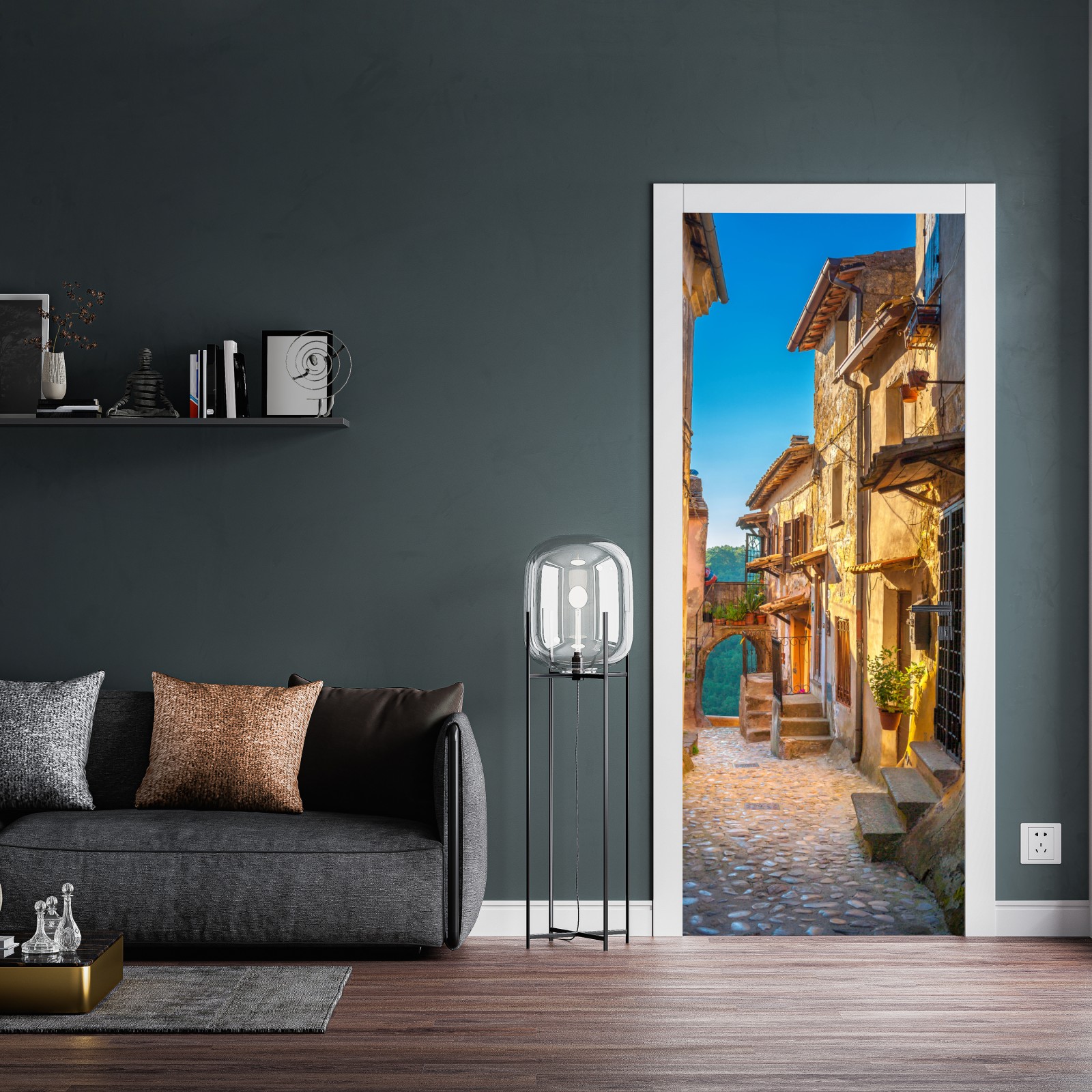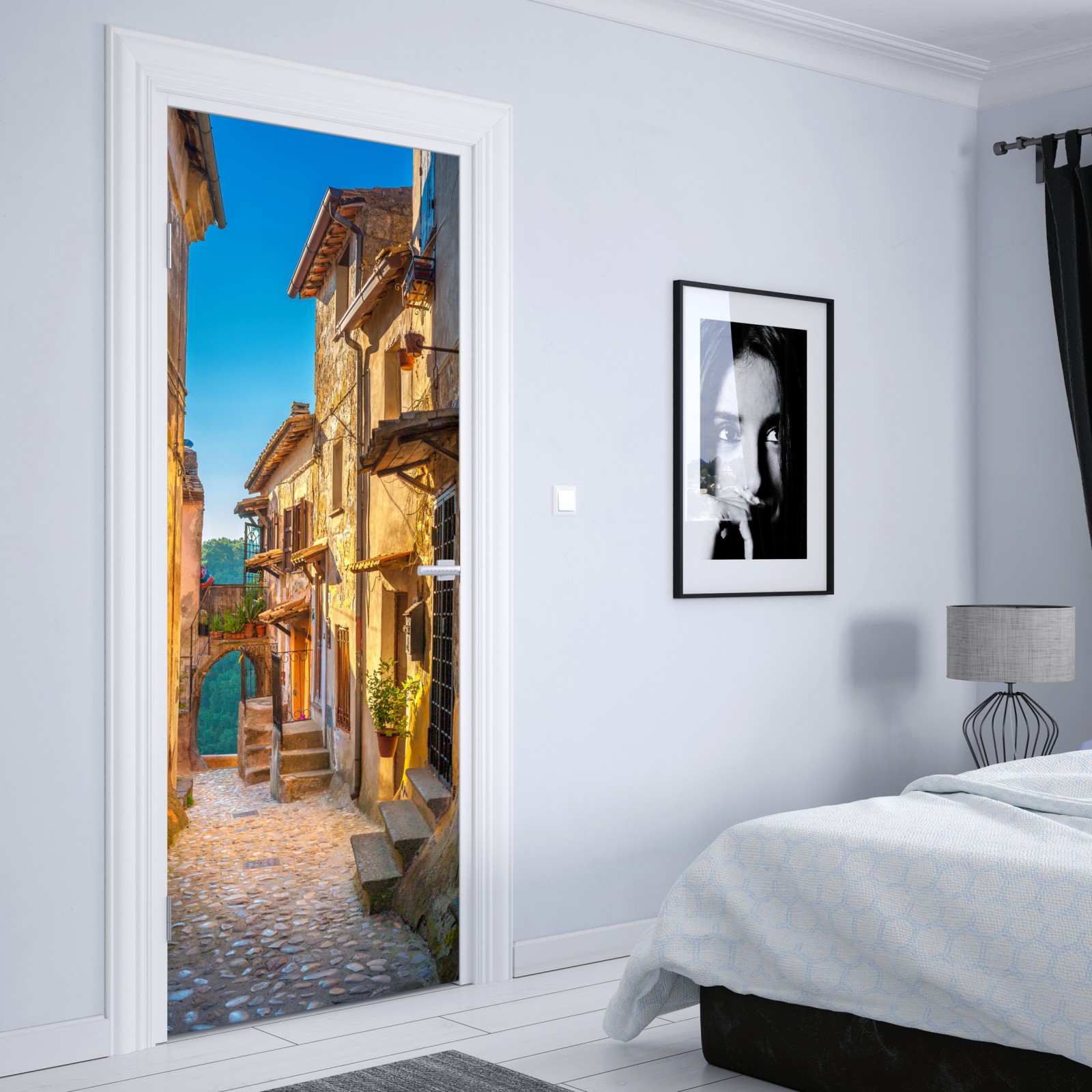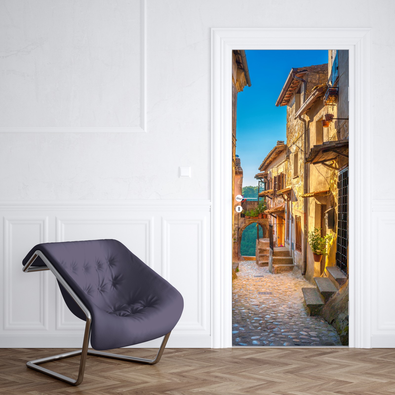 Türaufkleber sonnenbeschienene gasse in der Toskana