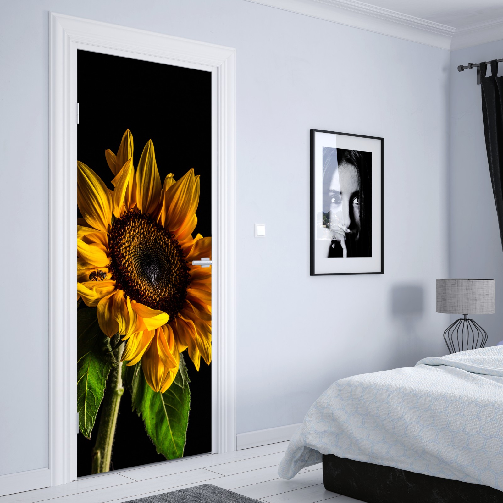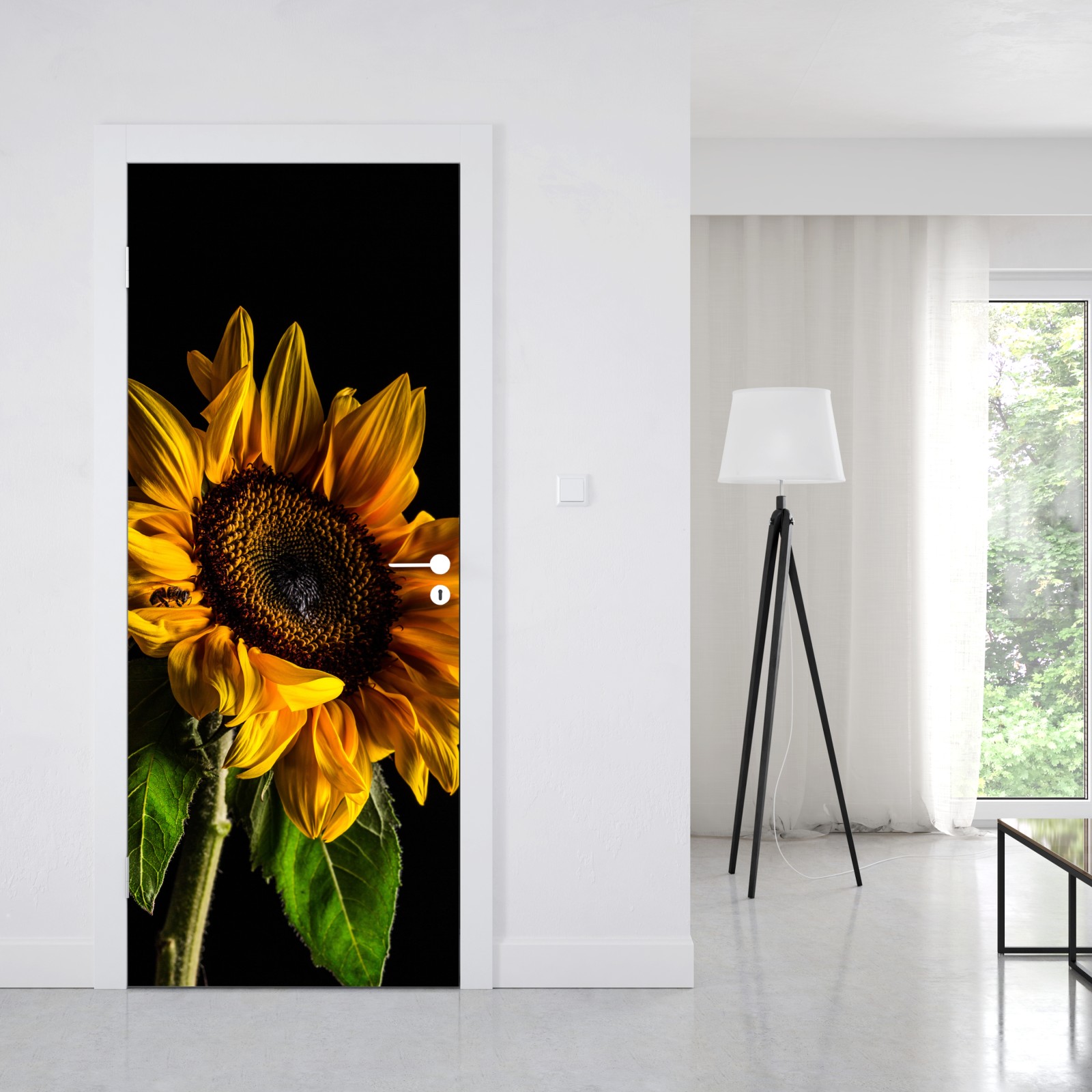 Türaufkleber goldene sonnenblume in nahaufnahme