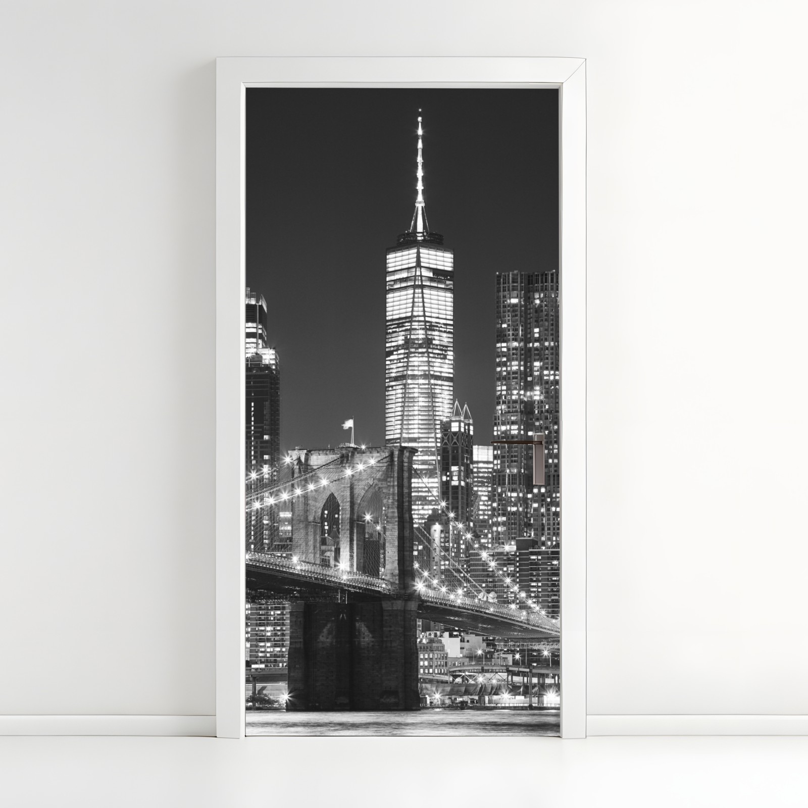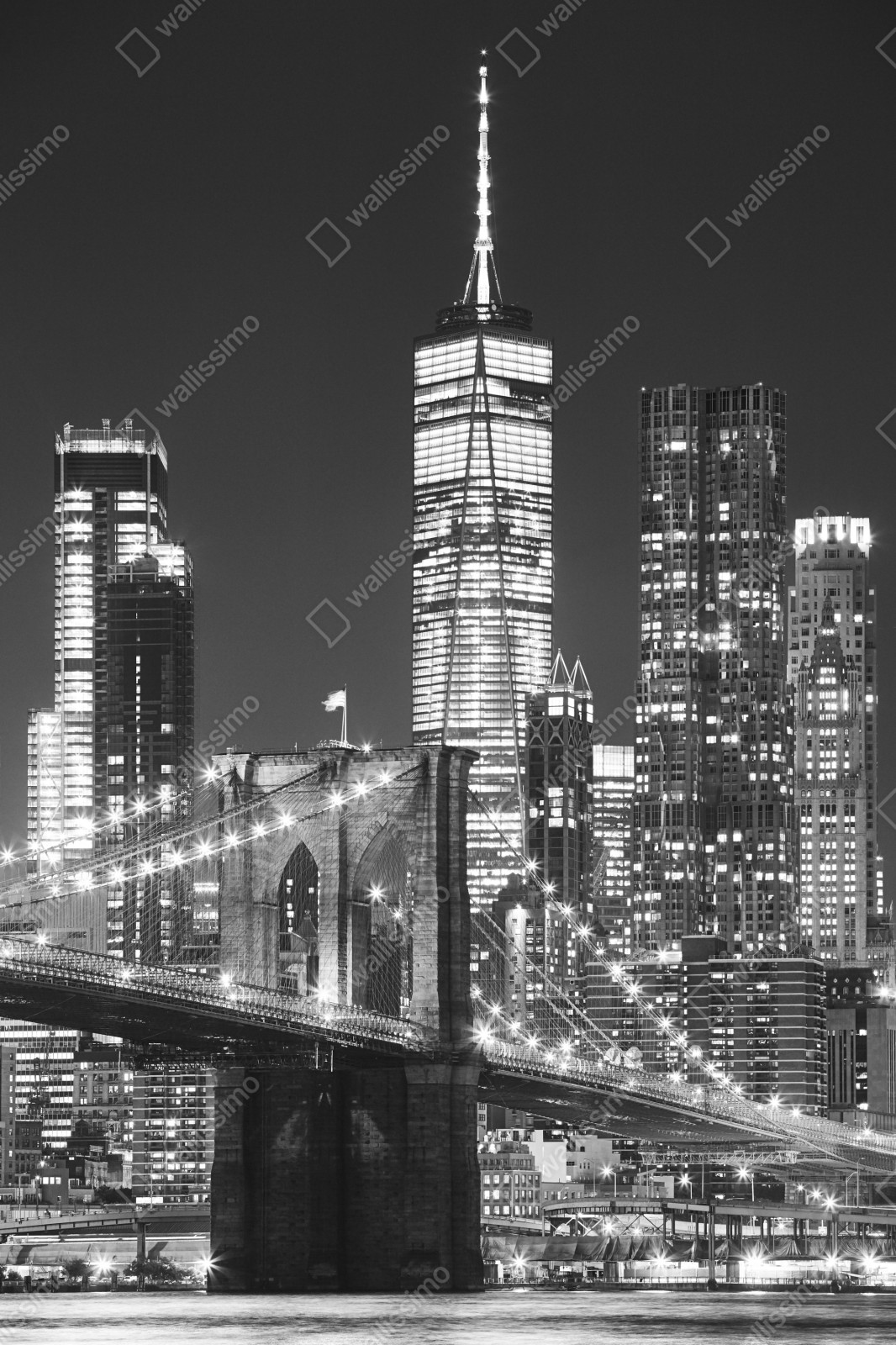 Verleiht jedem Raum urbane Eleganz mit einer schwarz-weißen Nachtaufnahme von Brooklyn Bridge und Manhattan.