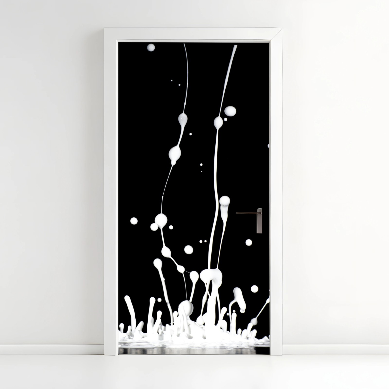 Türaufkleber Weiße flüssigkeitsspritzer auf schwarzem hintergrund