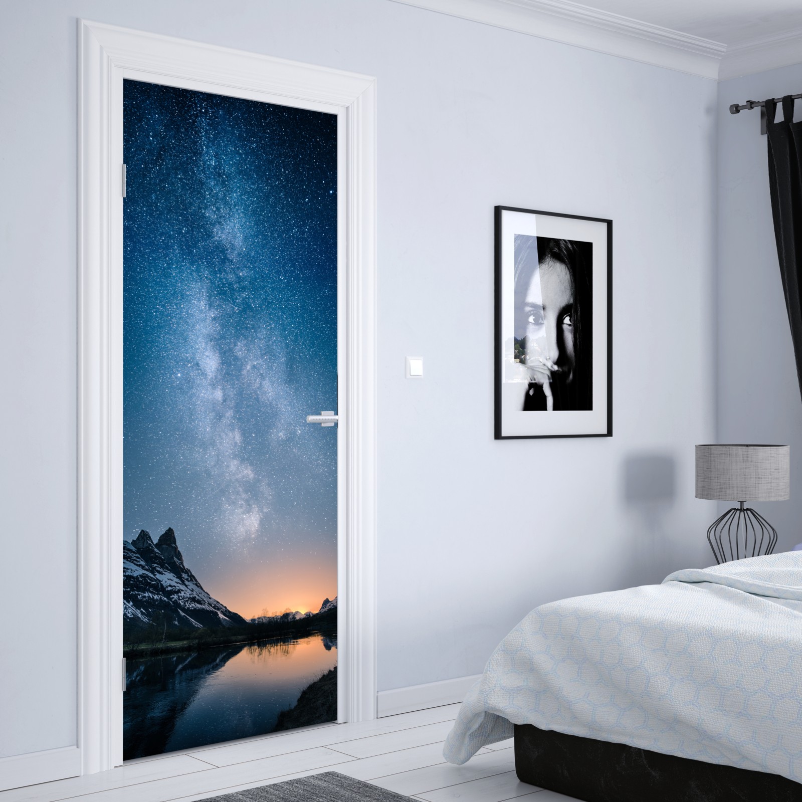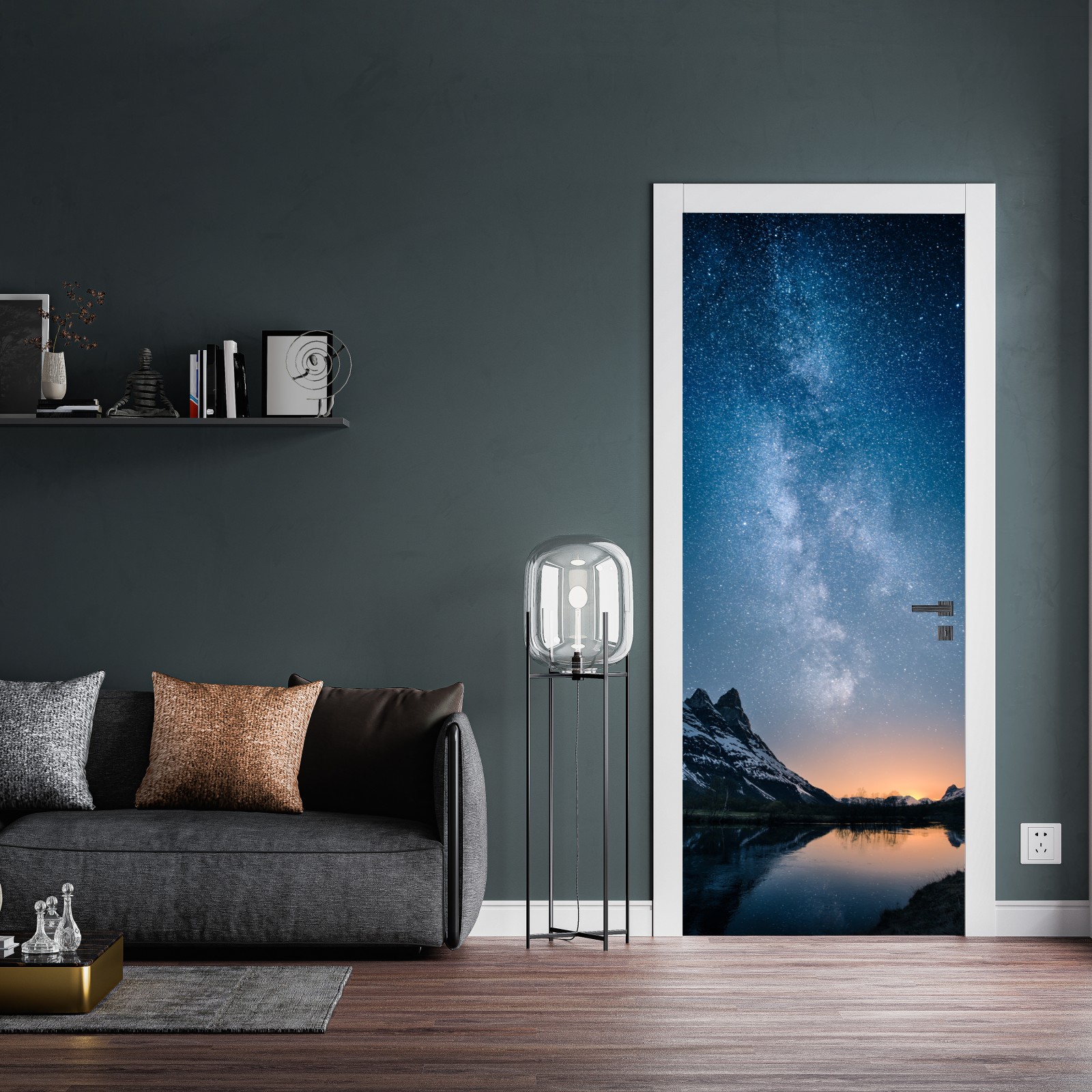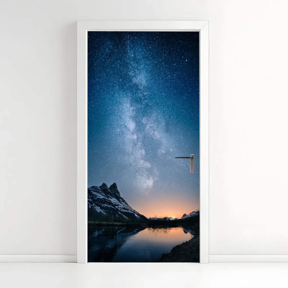 Erleben Sie das Wunder eines sternenübersäten Himmels über ruhigen Bergen mit klarer Spiegelung im Wasser.