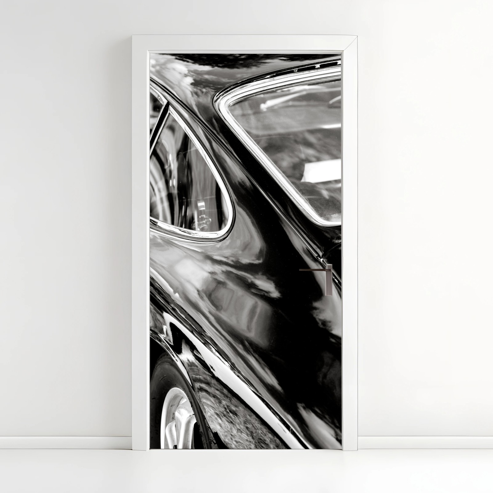 Türaufkleber Oldtimer rückansicht detail in schwarzweiß