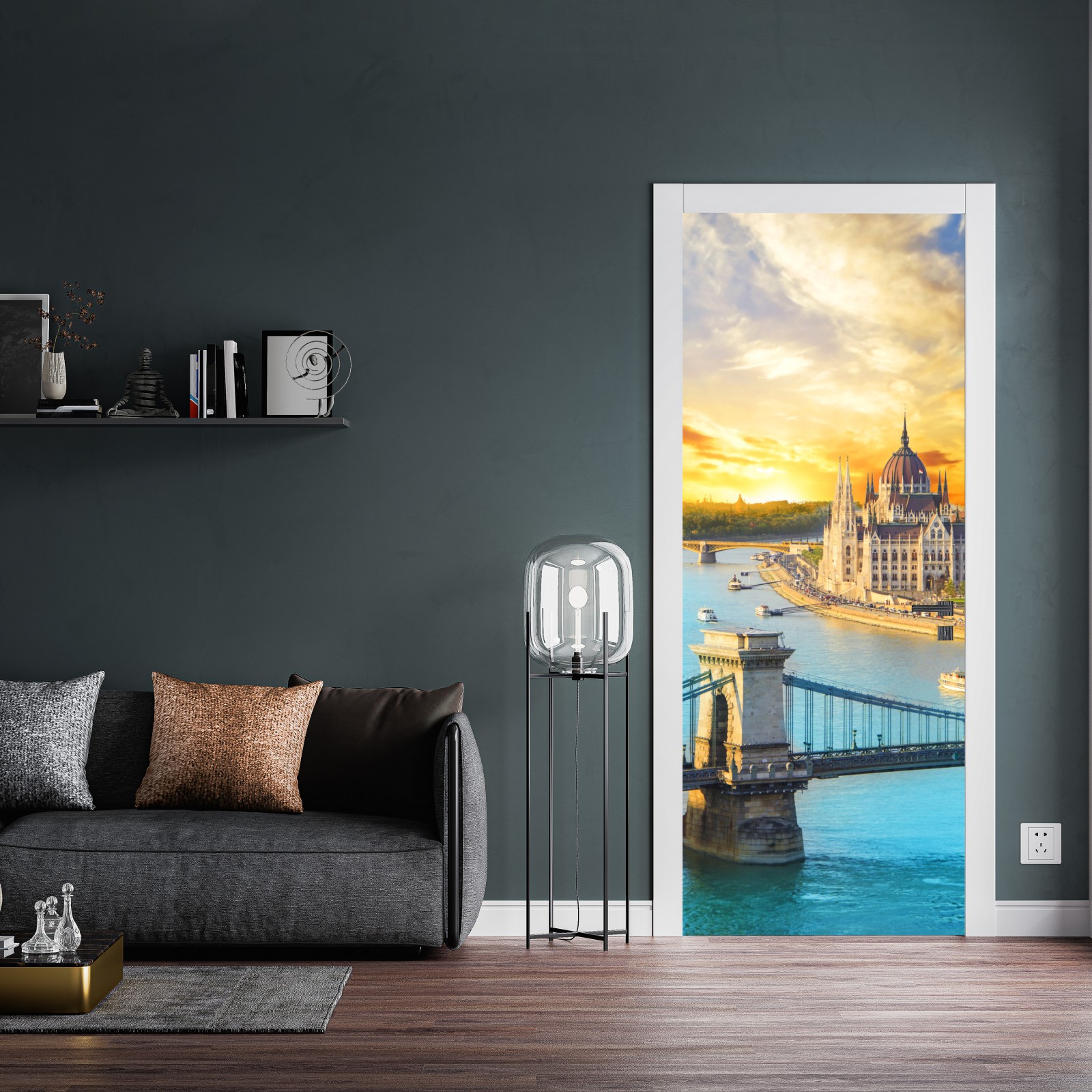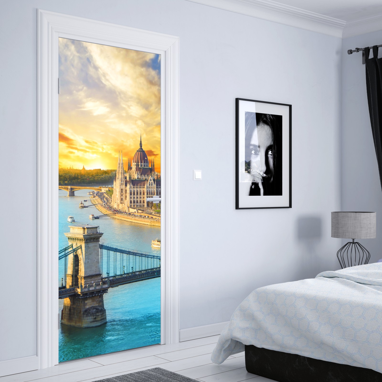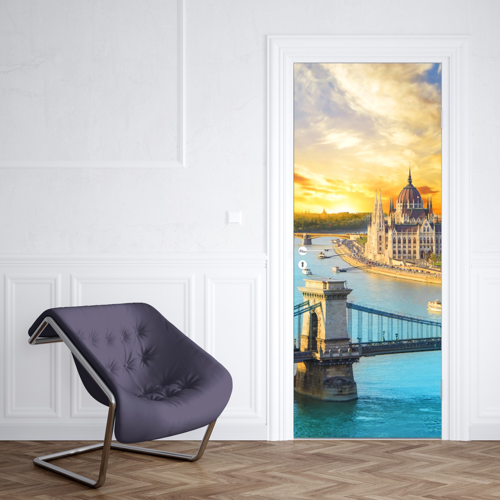 Türaufkleber sonnenuntergang über Budapest und der Kettenbrücke