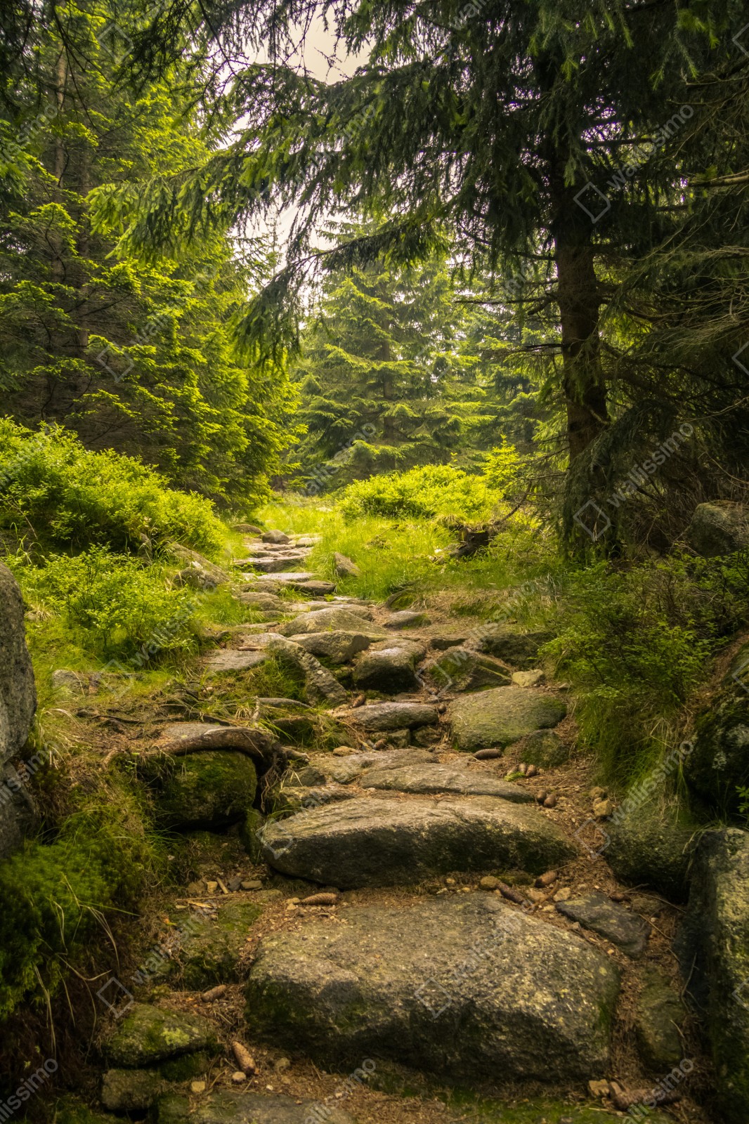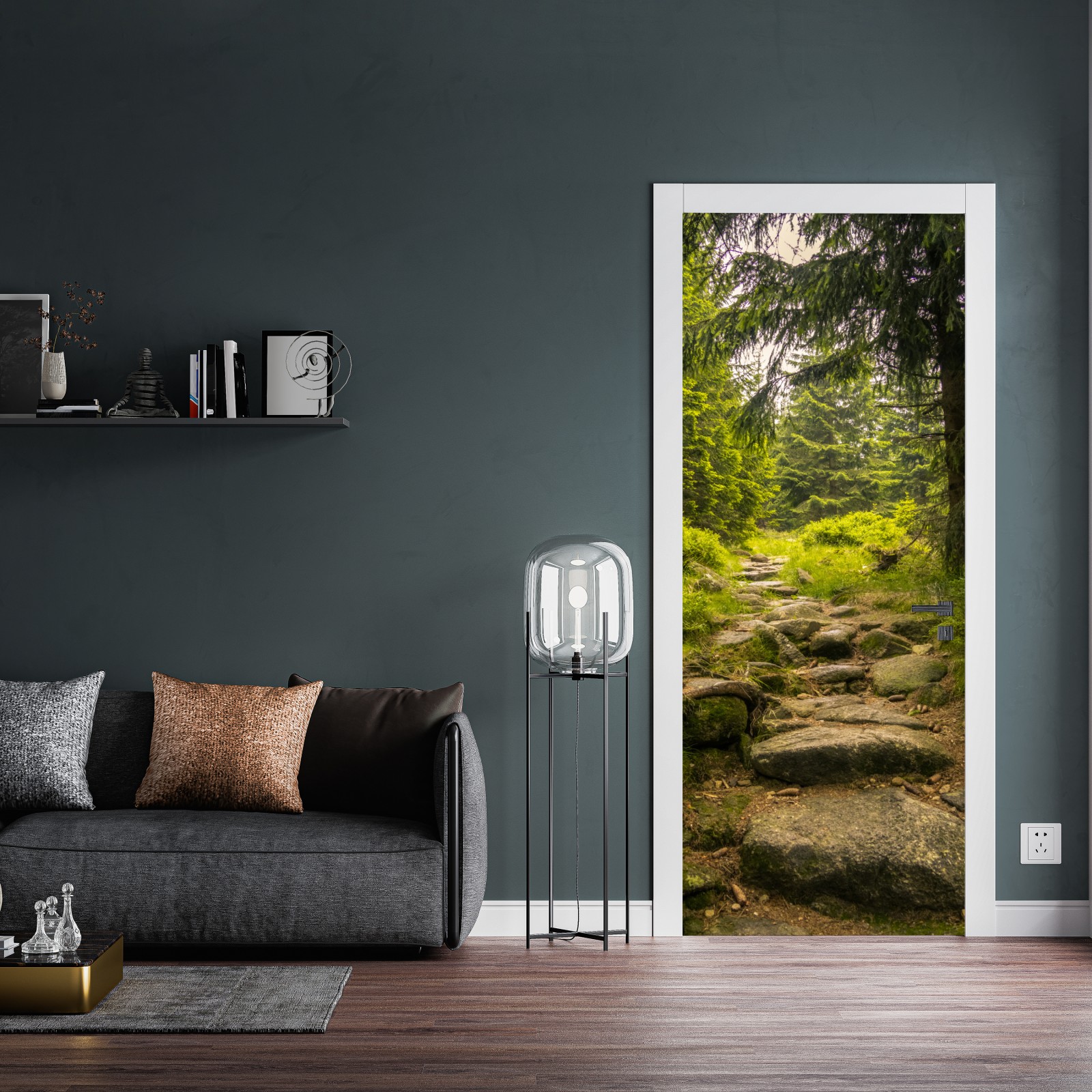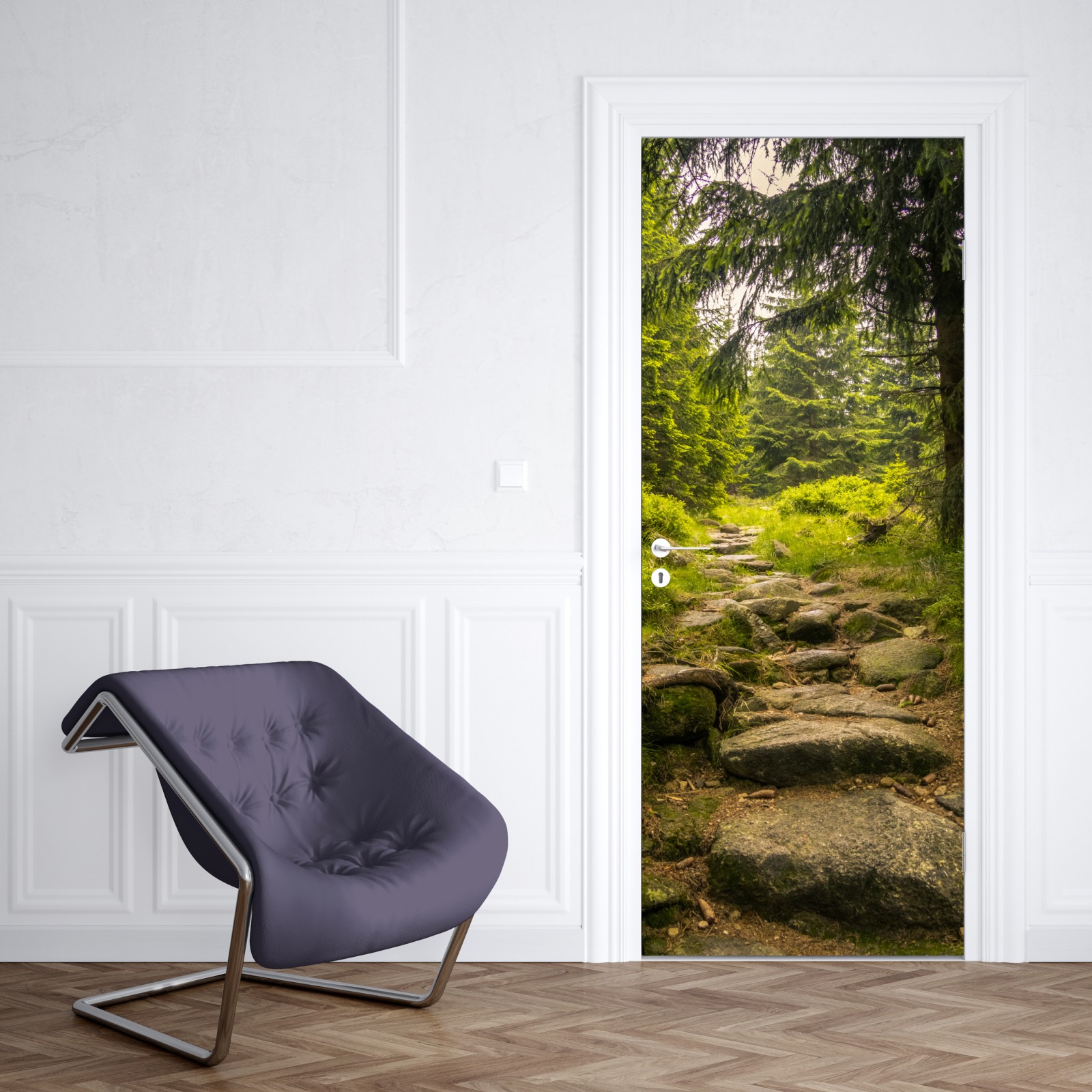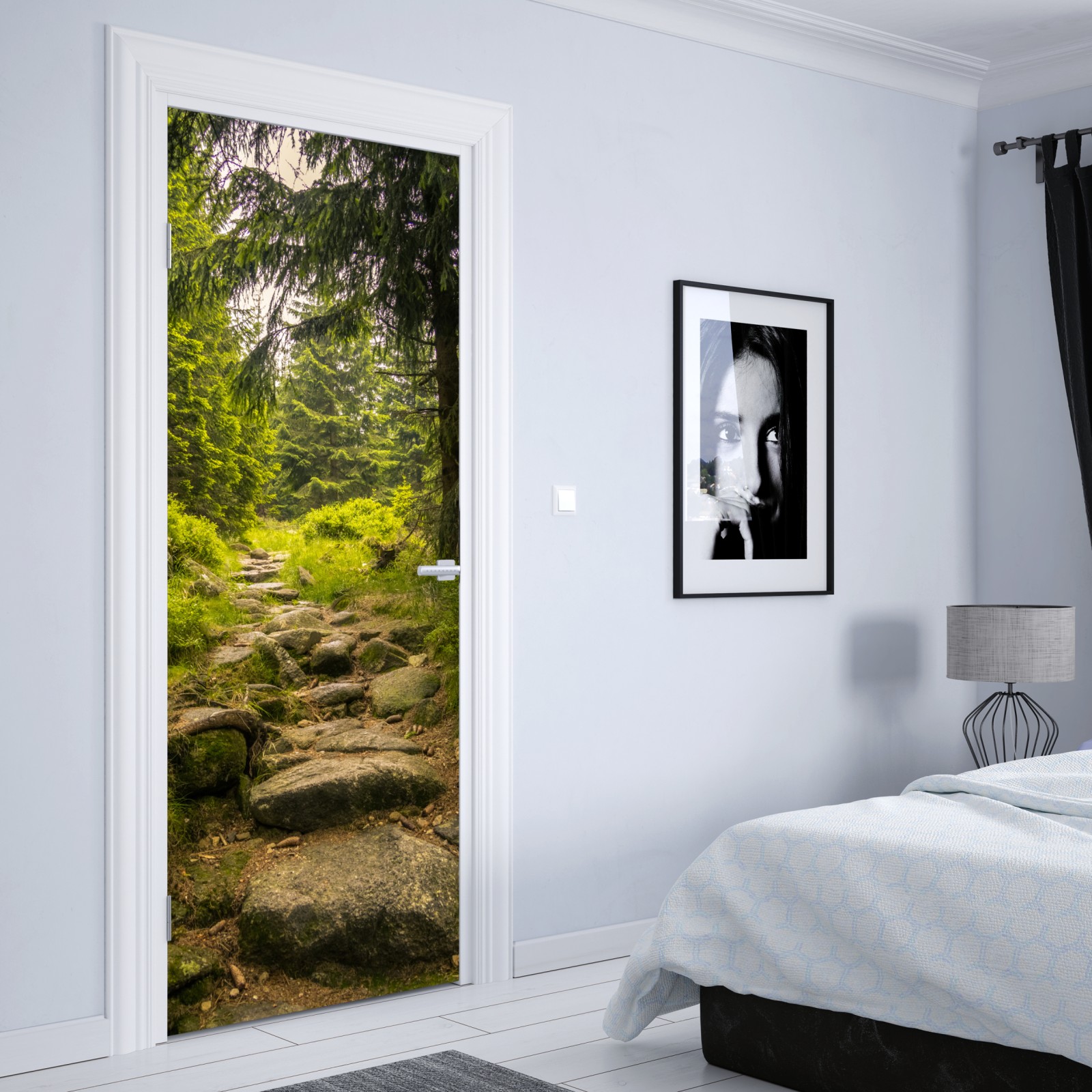 Türaufkleber ruhiger waldweg durch nadelwald