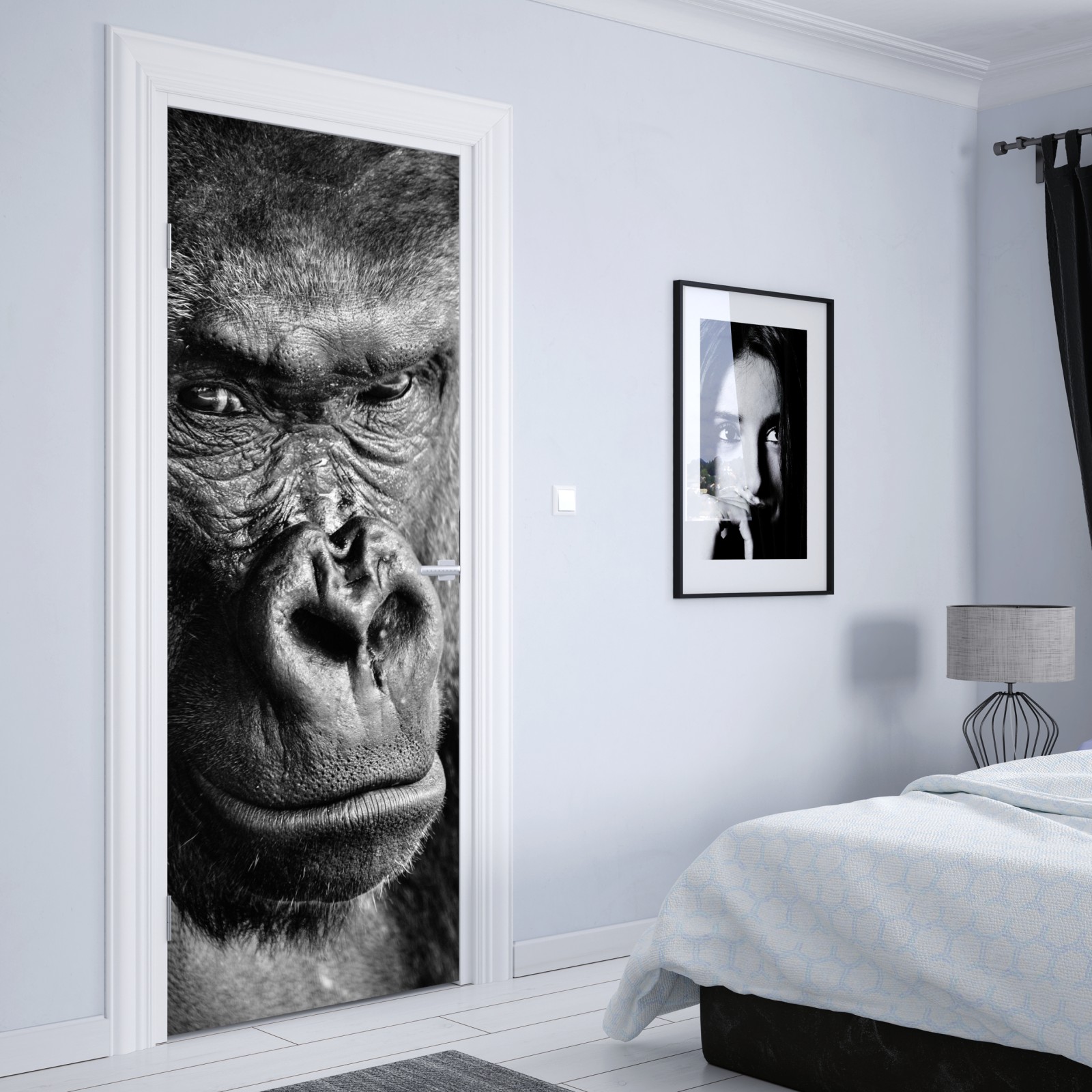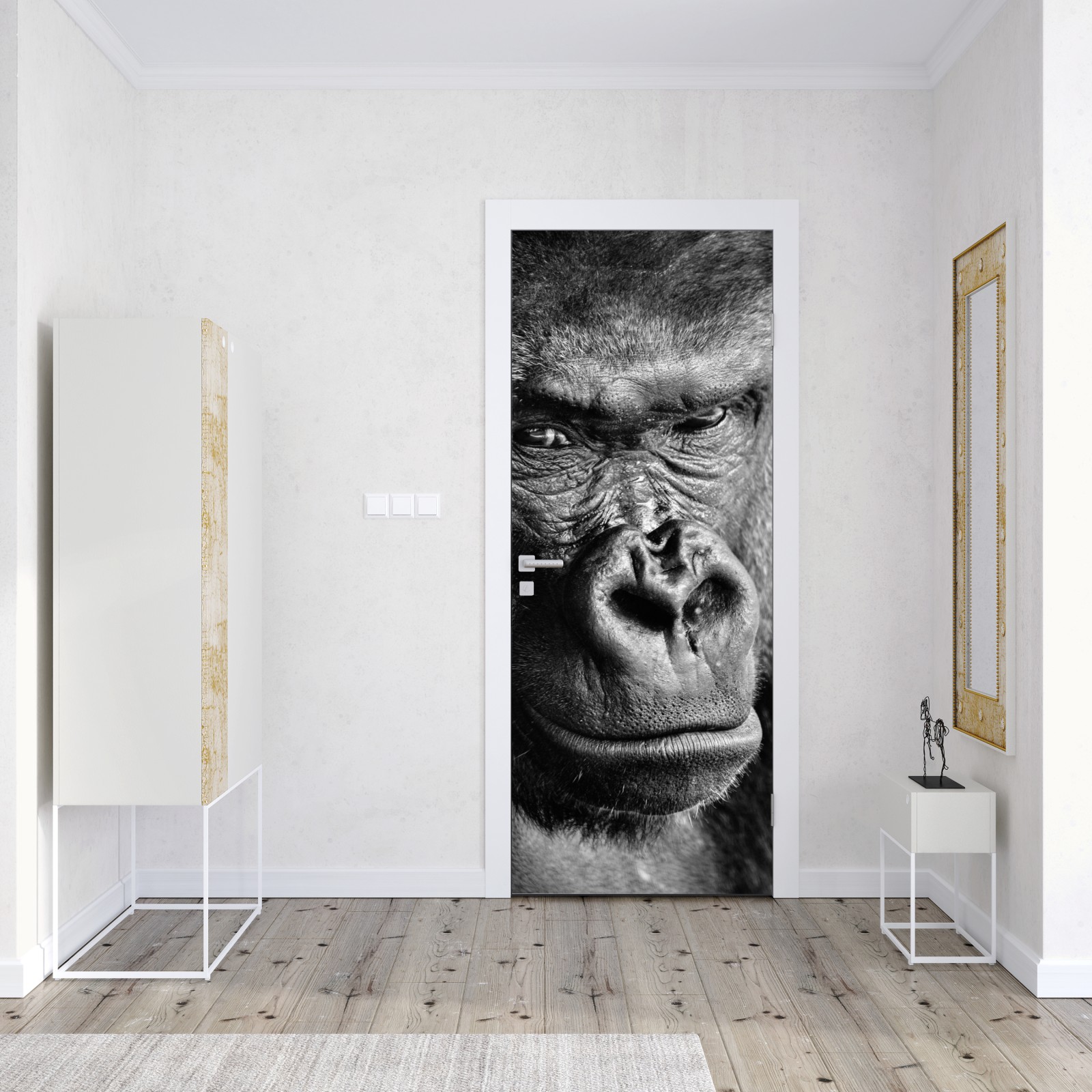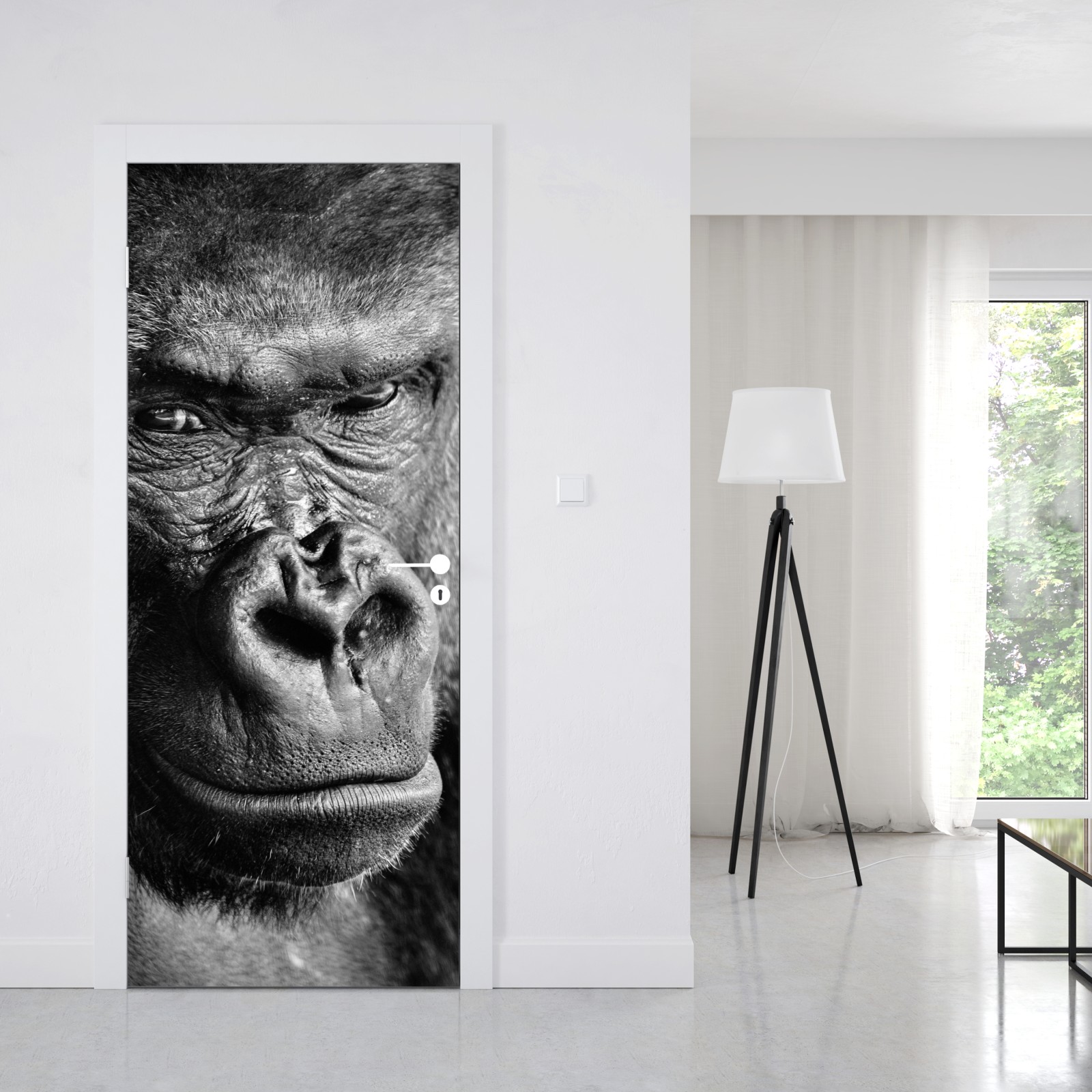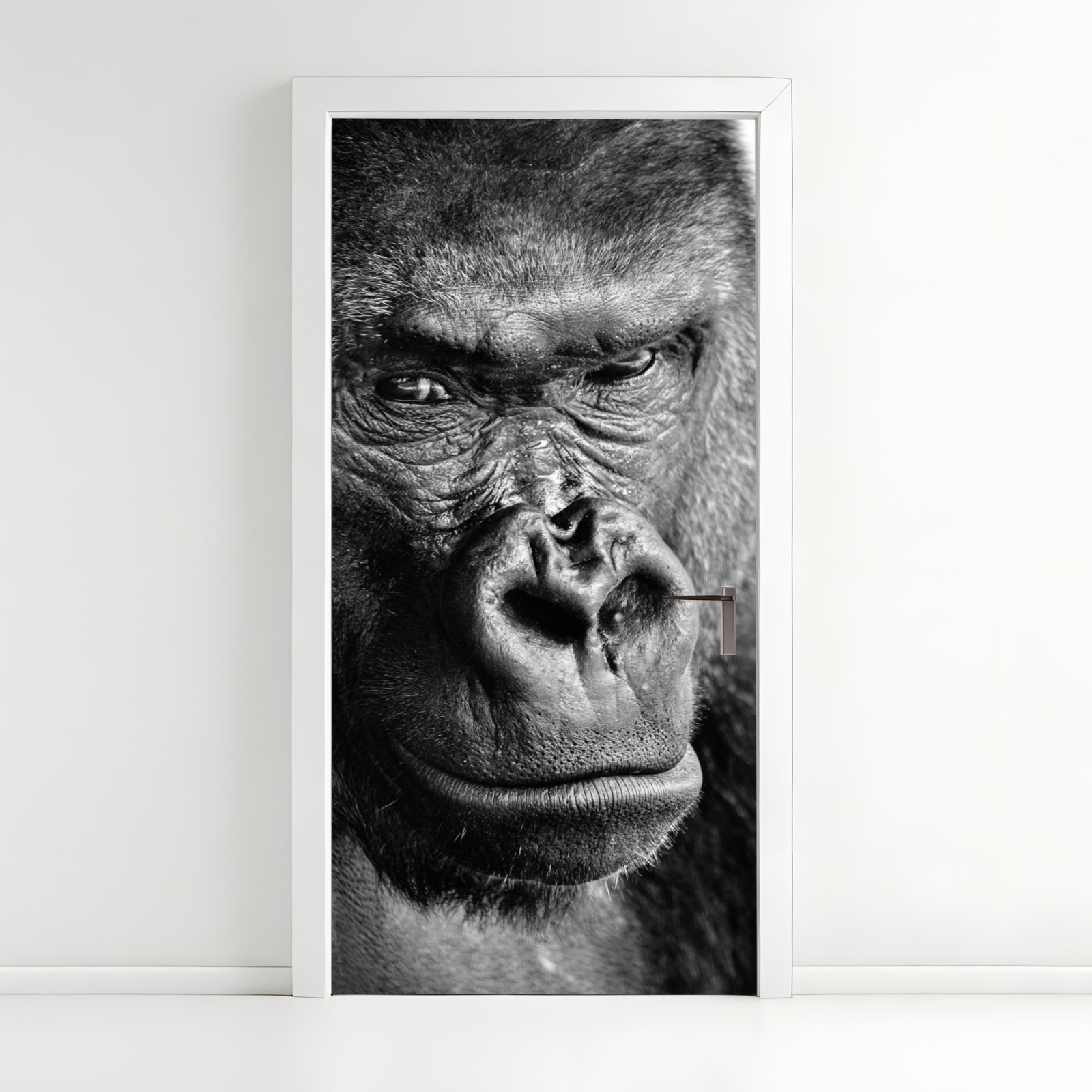 Türaufkleber intensives gorilla-porträt in schwarzweiß