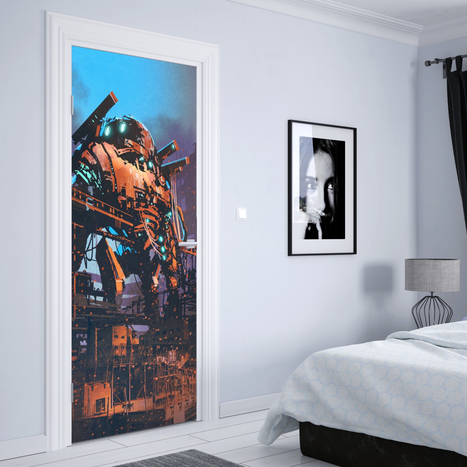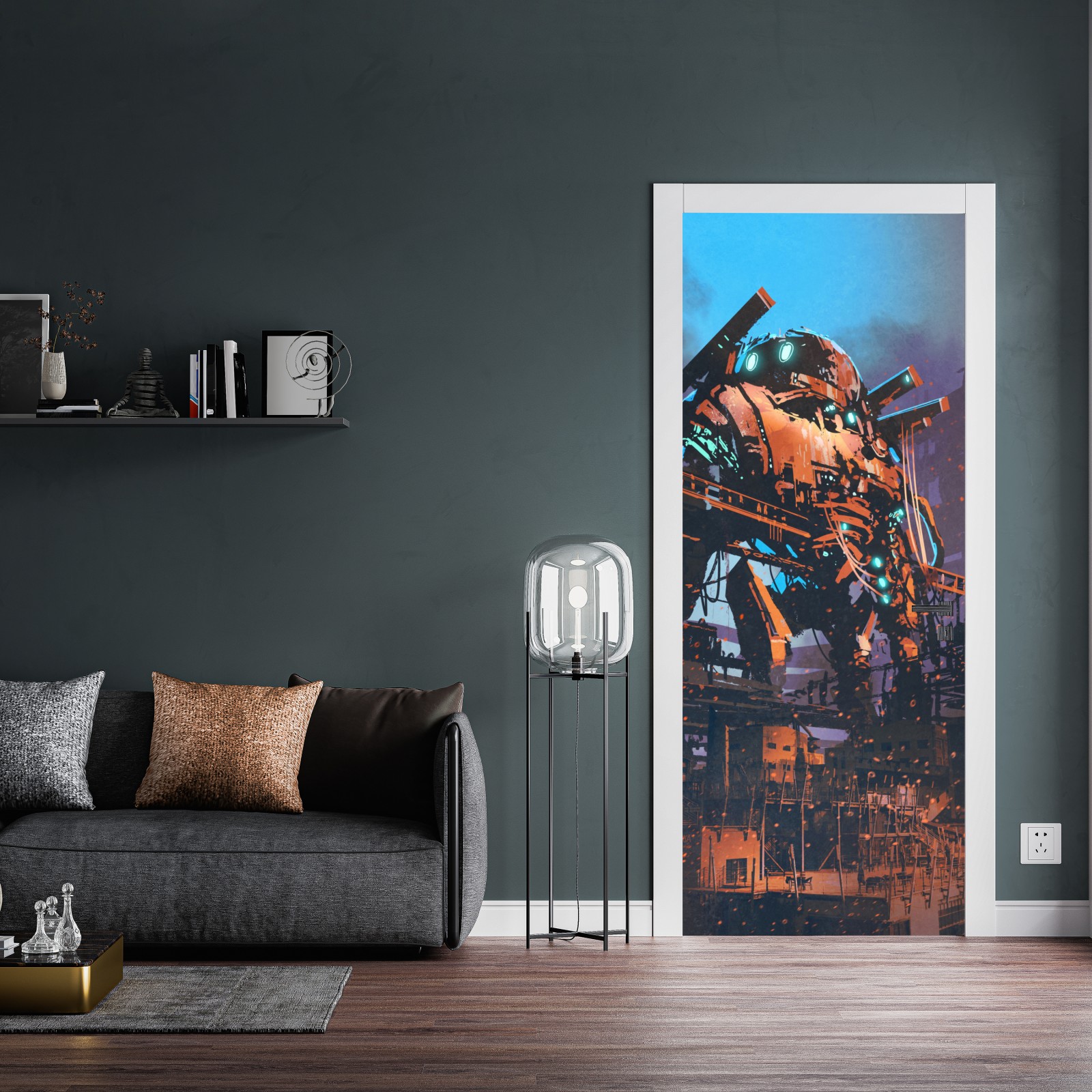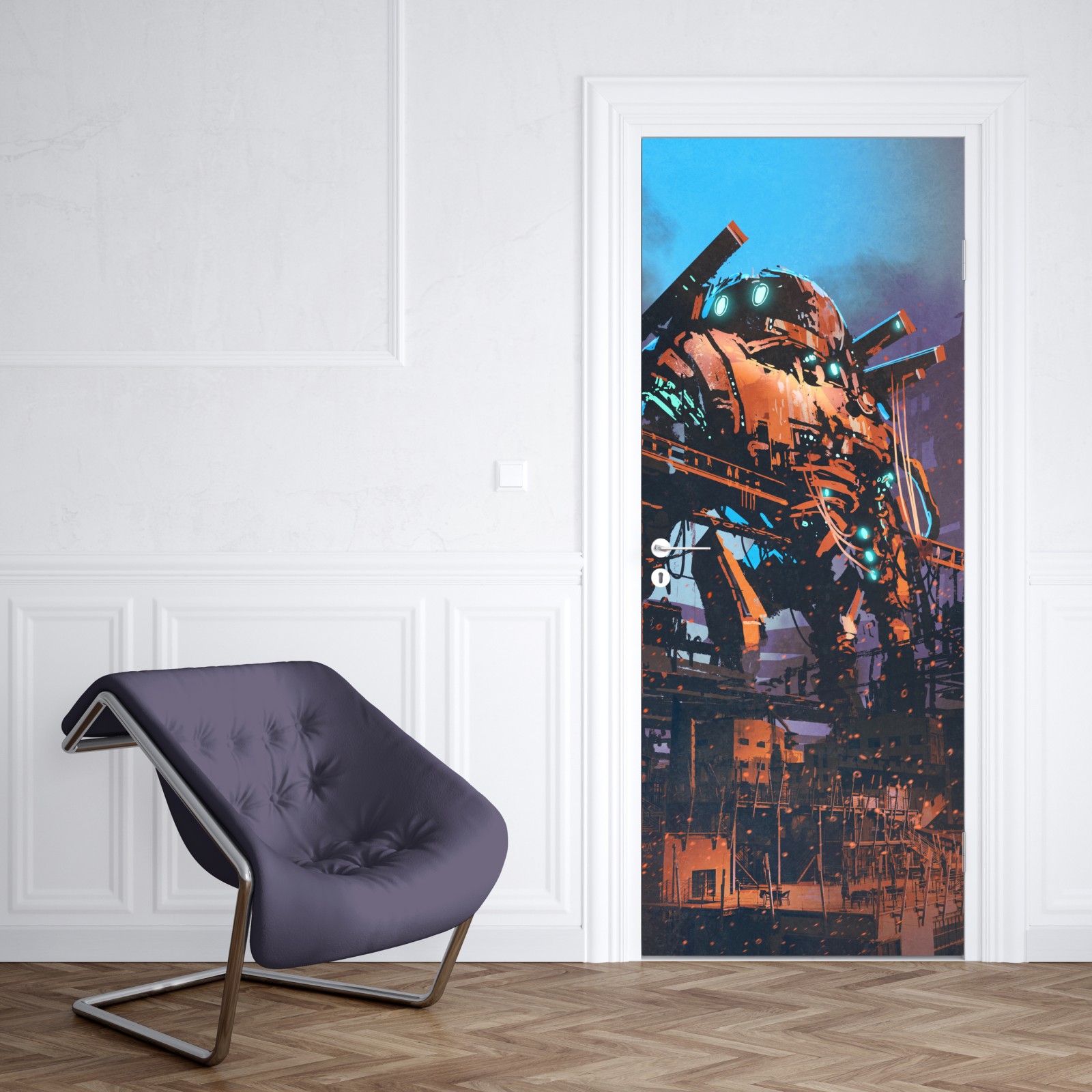 Verleihen Sie Ihrem Raum einen industriellen Sci‑Fi-Look mit dieser eindrucksvollen Darstellung eines riesigen Mechs in einer verlassenen Fabrik.