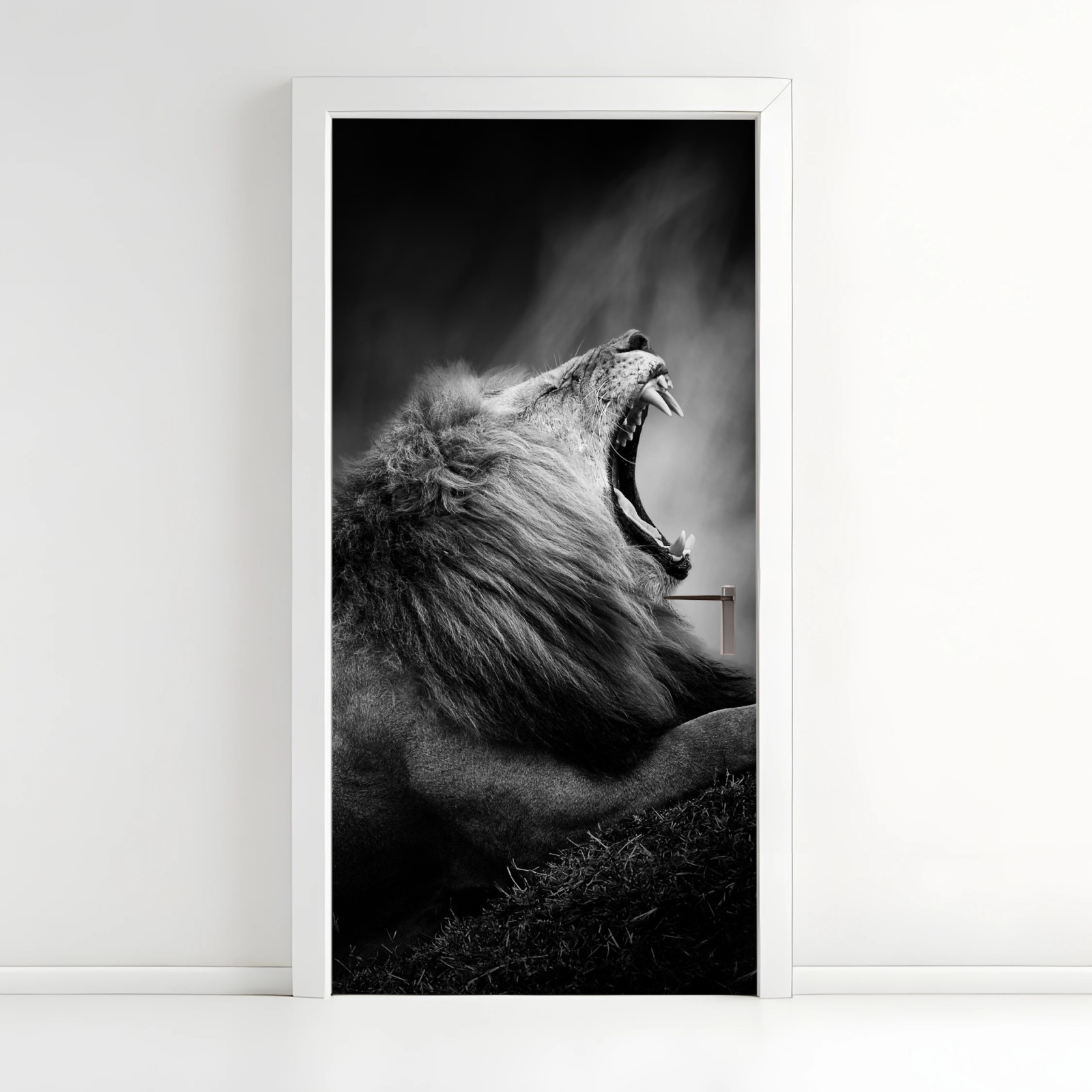Türaufkleber Majestätischer brüllender löwe in monochrom