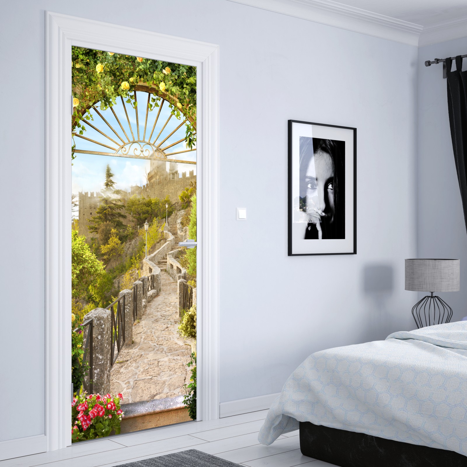 Betreten Sie einen sonnigen Gartenweg, der zu einem bezaubernden Schloss führt, und bringen Sie zeitlose Ruhe in Ihr Zuhause.