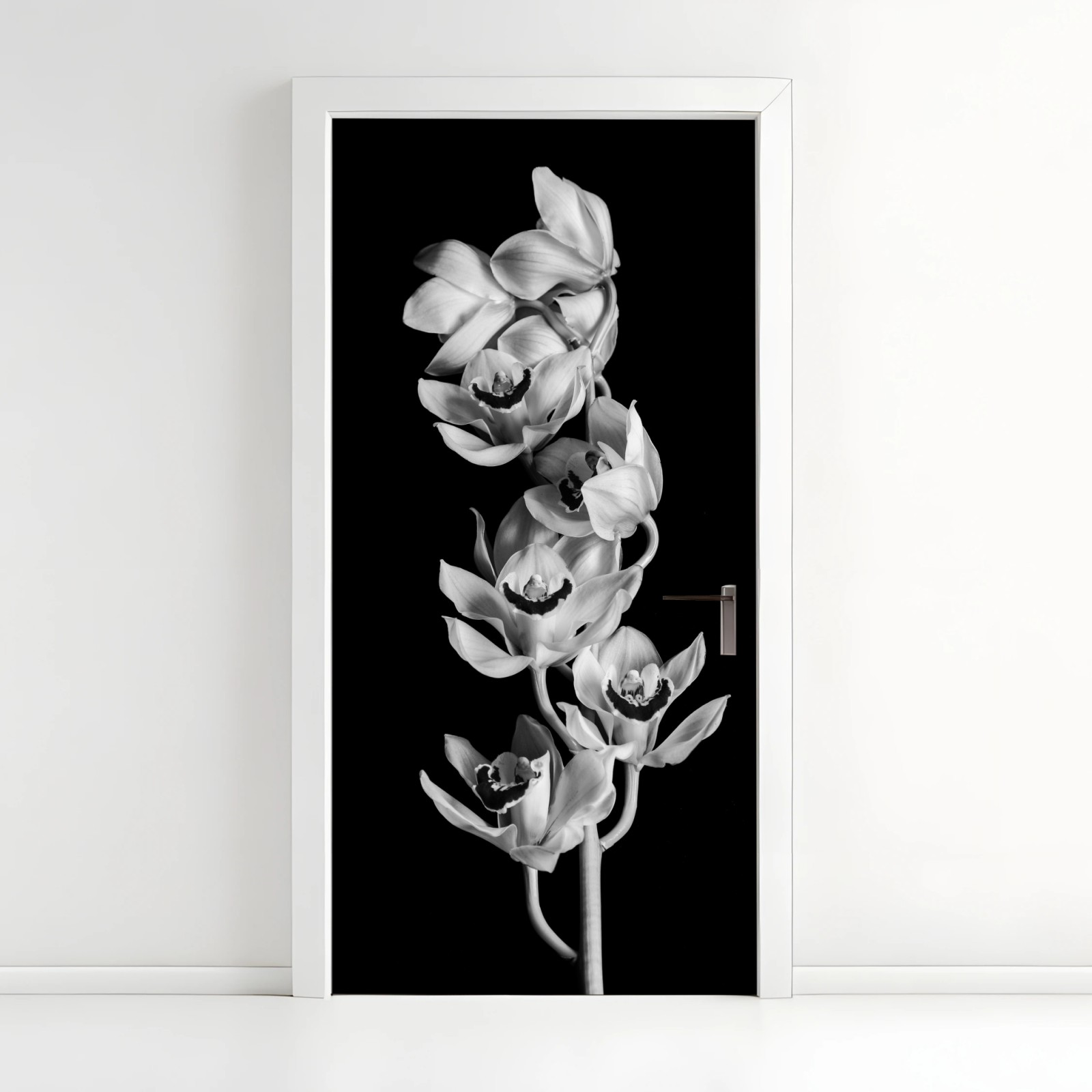 Türaufkleber Eleganter monochromer orchideenstiel