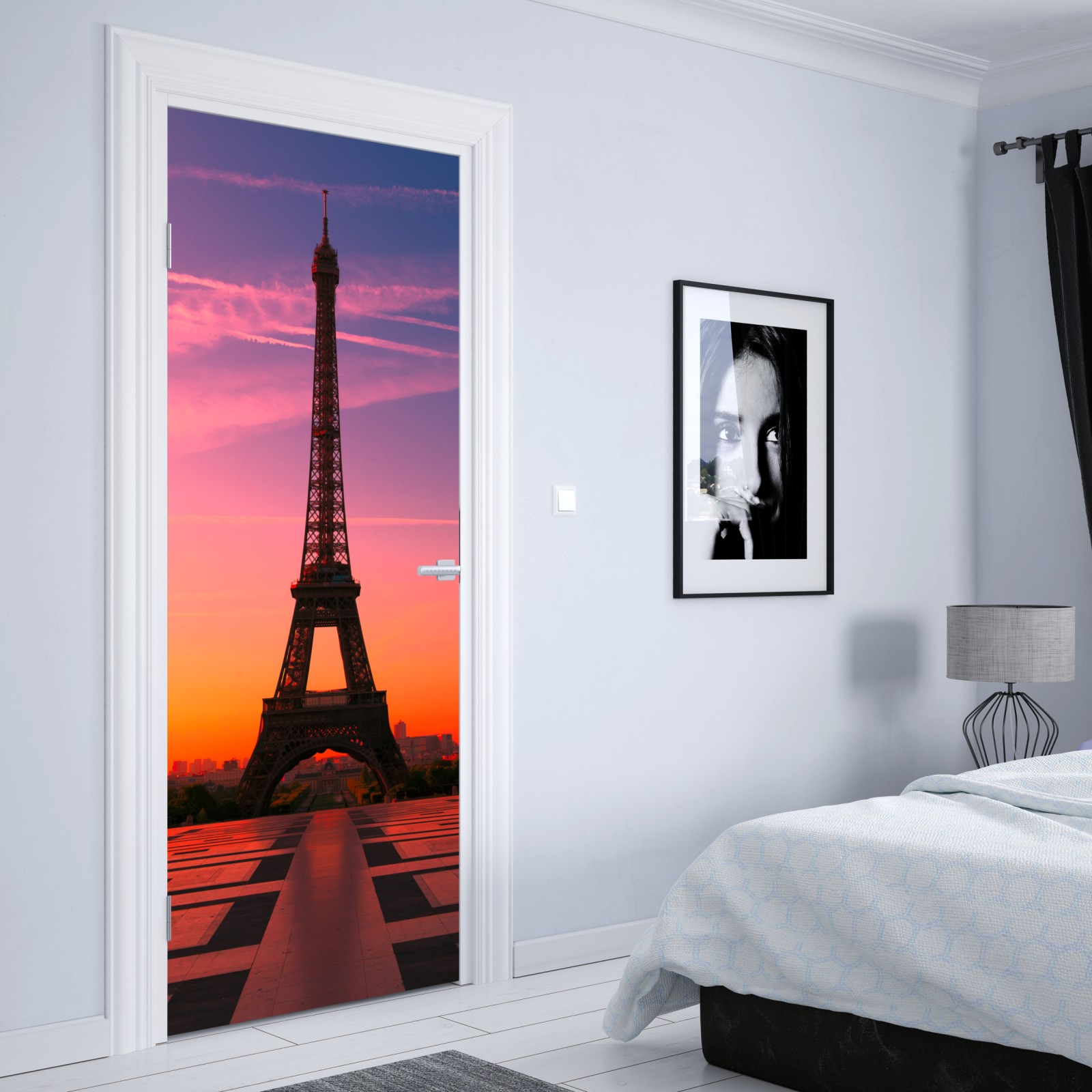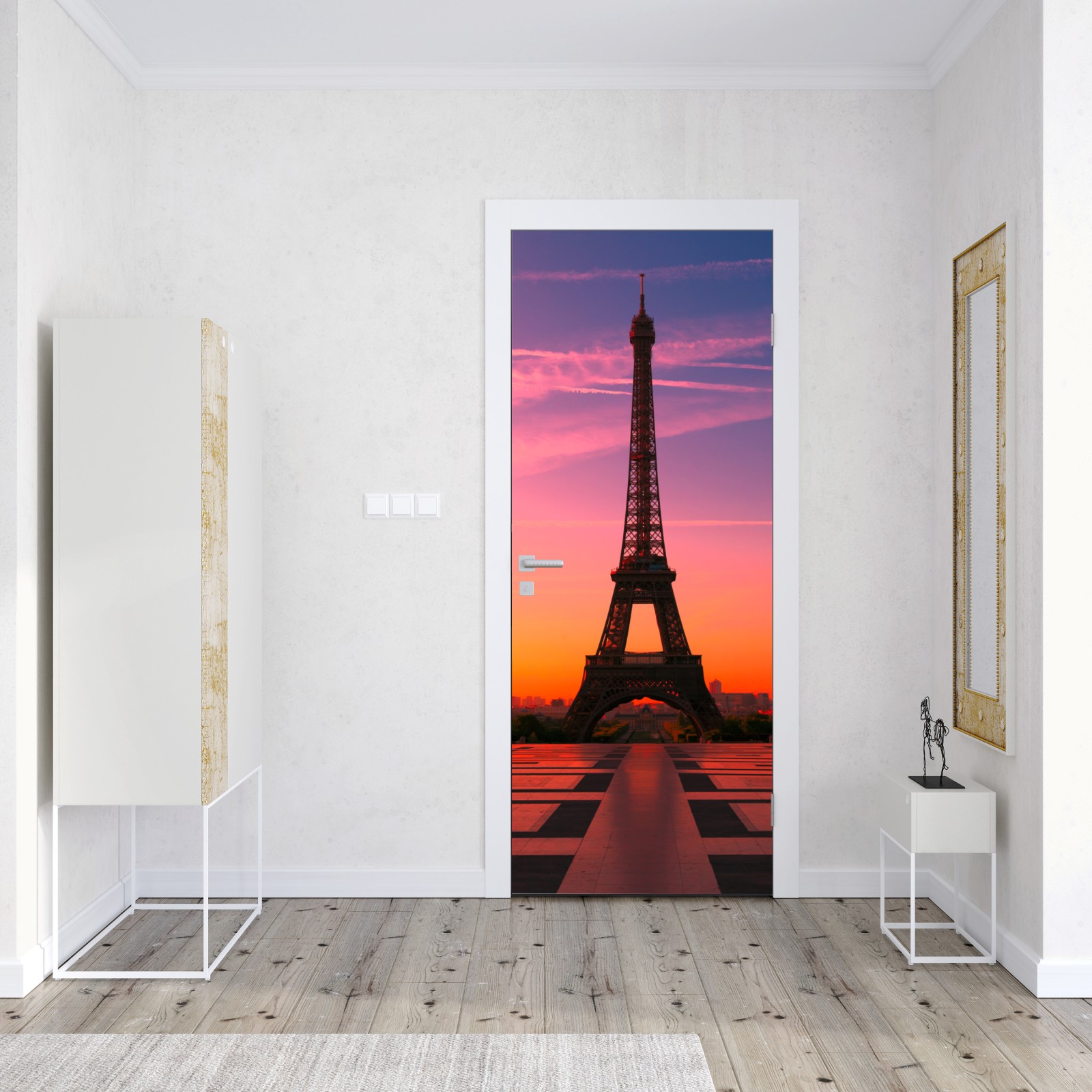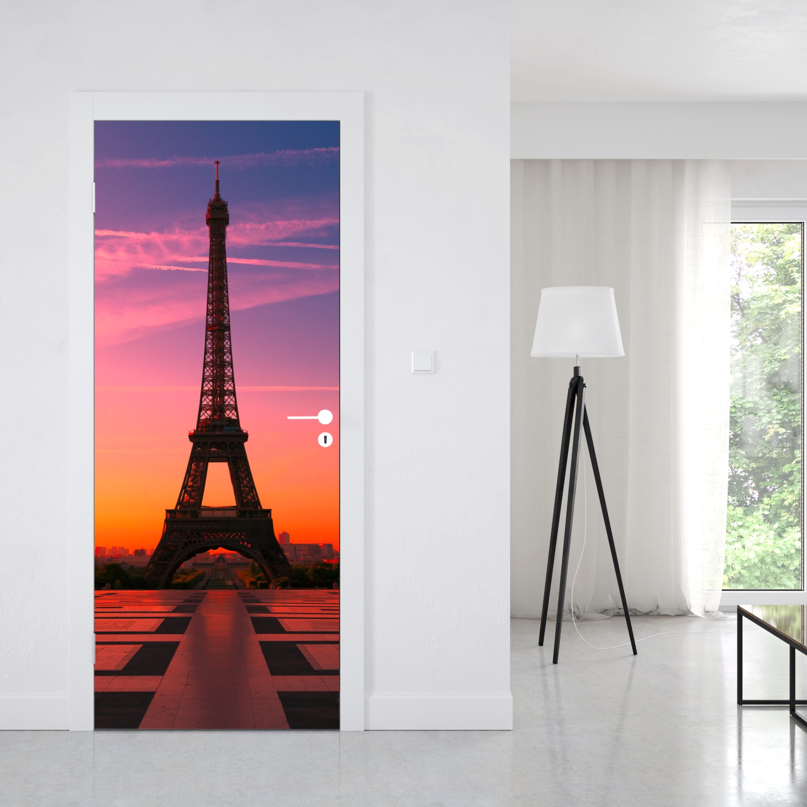Türaufkleber sonnenaufgang über dem Eiffelturm