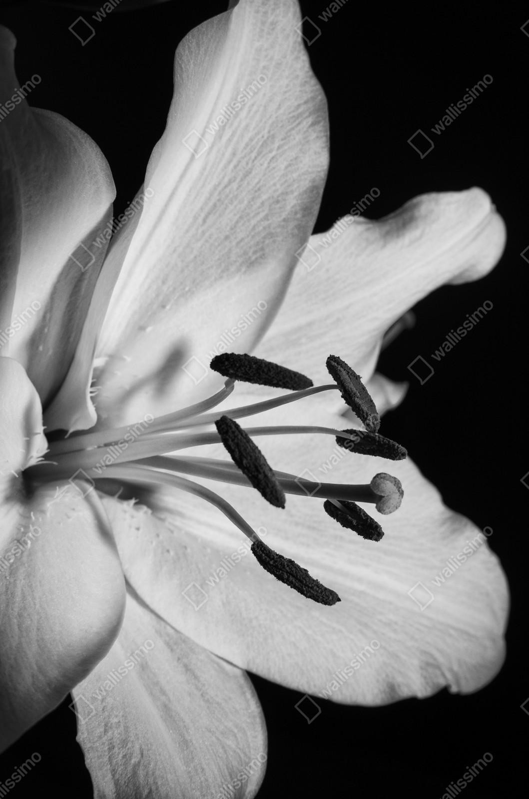 Zeitlose schwarzweiß-aufnahme einer Lilie, die Ruhe und Eleganz in jeden Raum bringt.