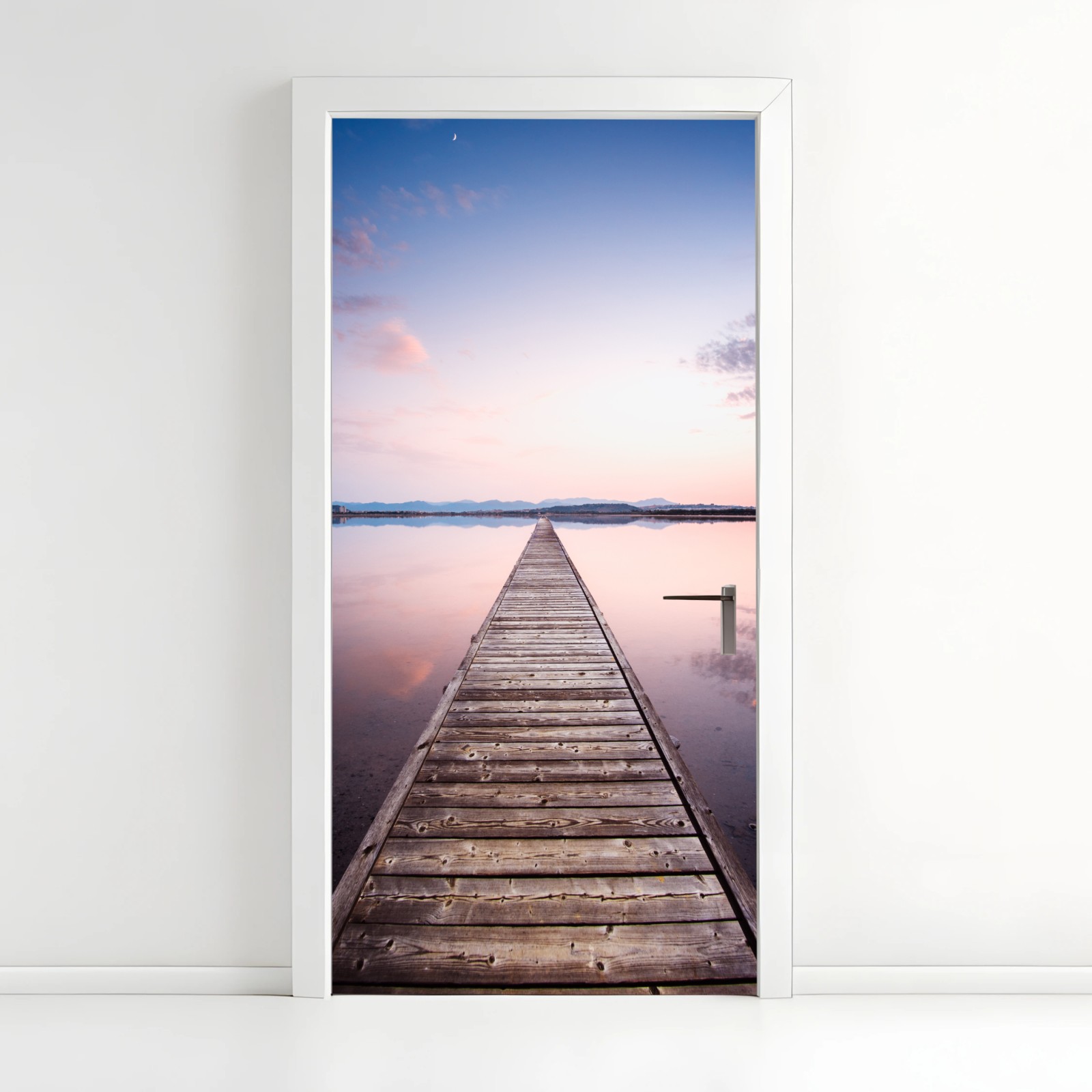 Türaufkleber Holzsteg zum horizont bei sonnenuntergang