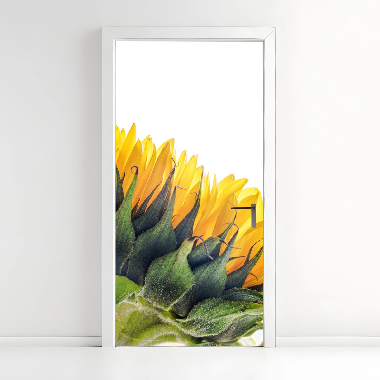 Türaufkleber Sonnenblume in der ecke auf weißem hintergrund