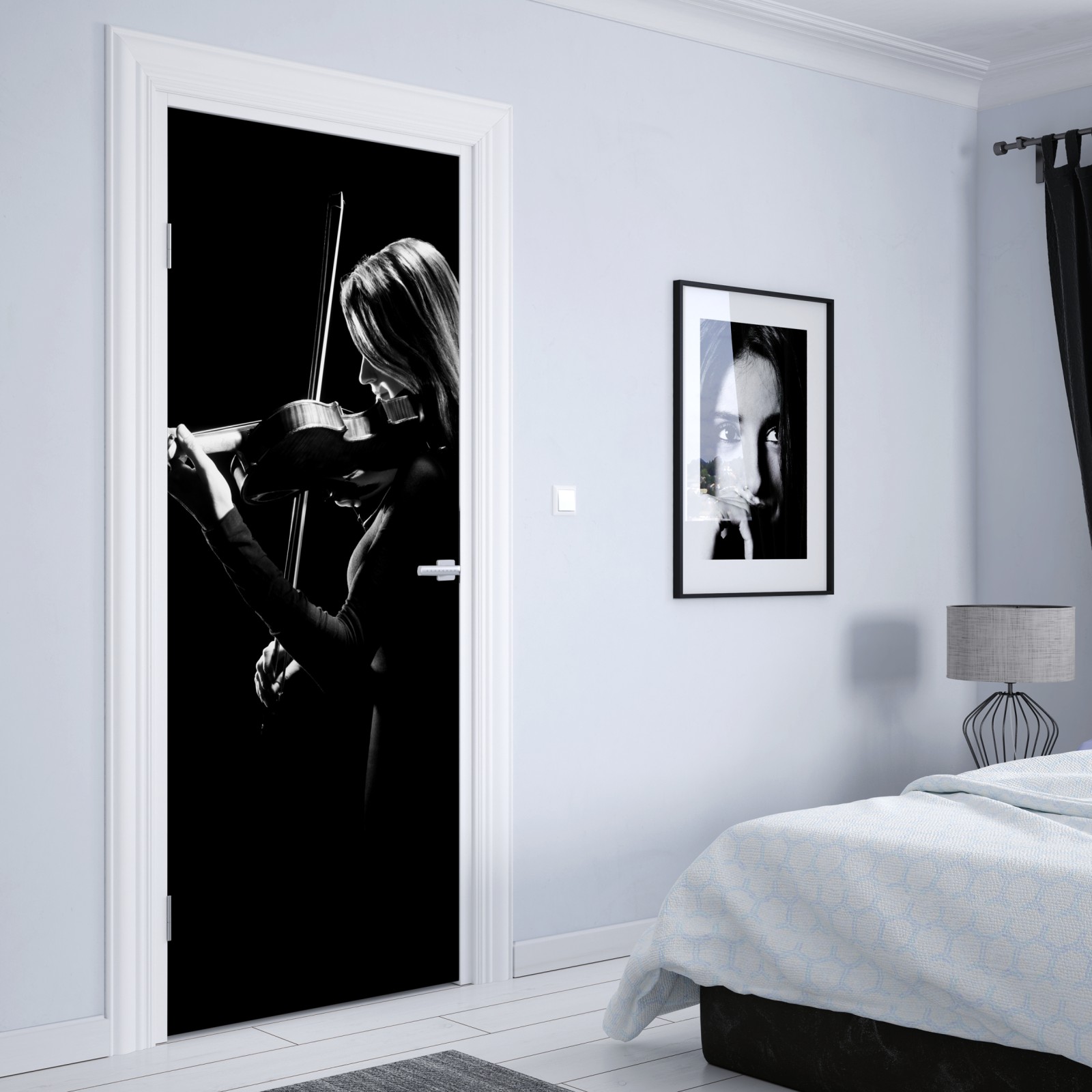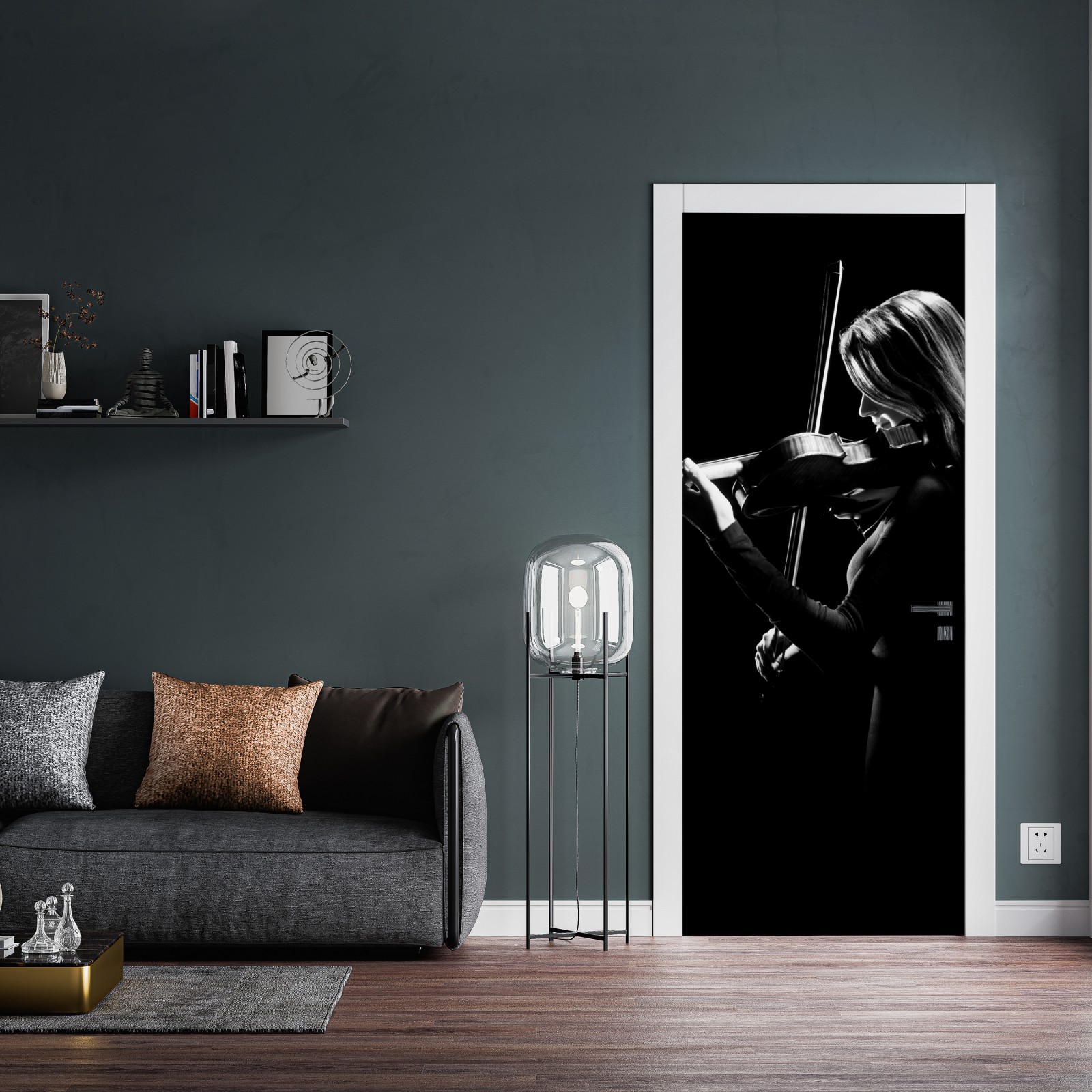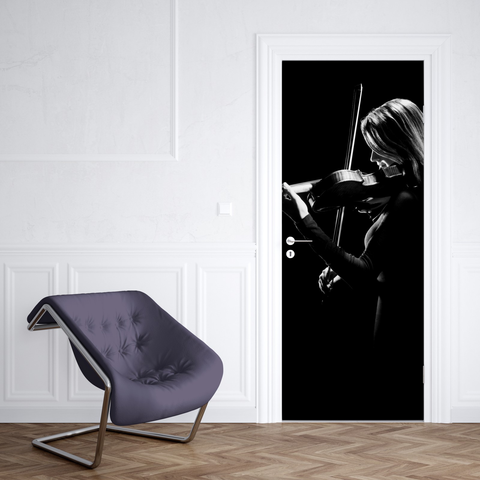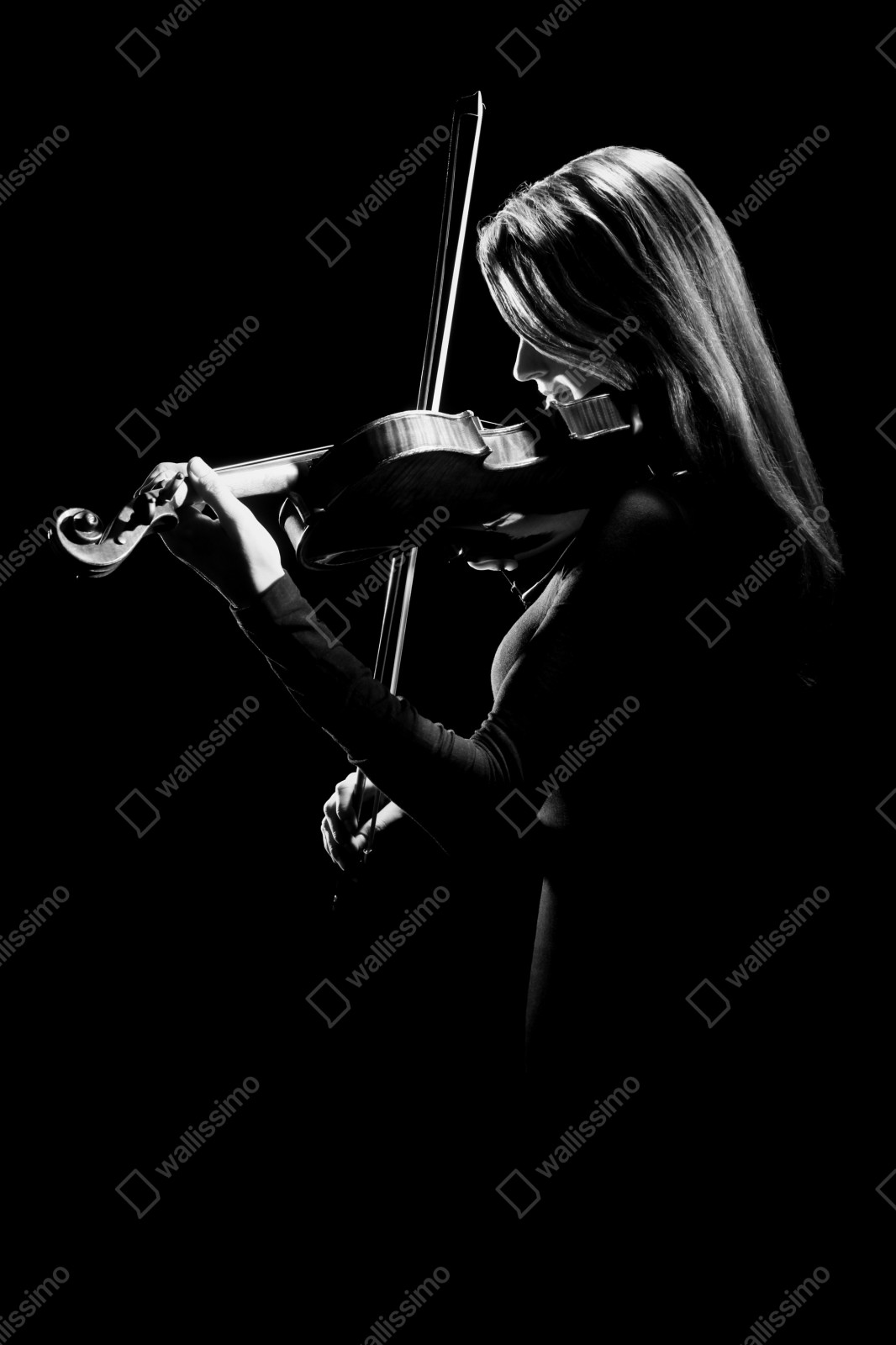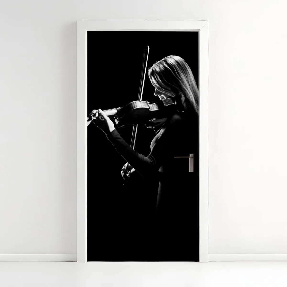 Bringen Sie zeitlose Eleganz und musikalische Atmosphäre in Ihr Zuhause mit dieser ausdrucksstarken schwarz-weißen Silhouette einer Geigerin.