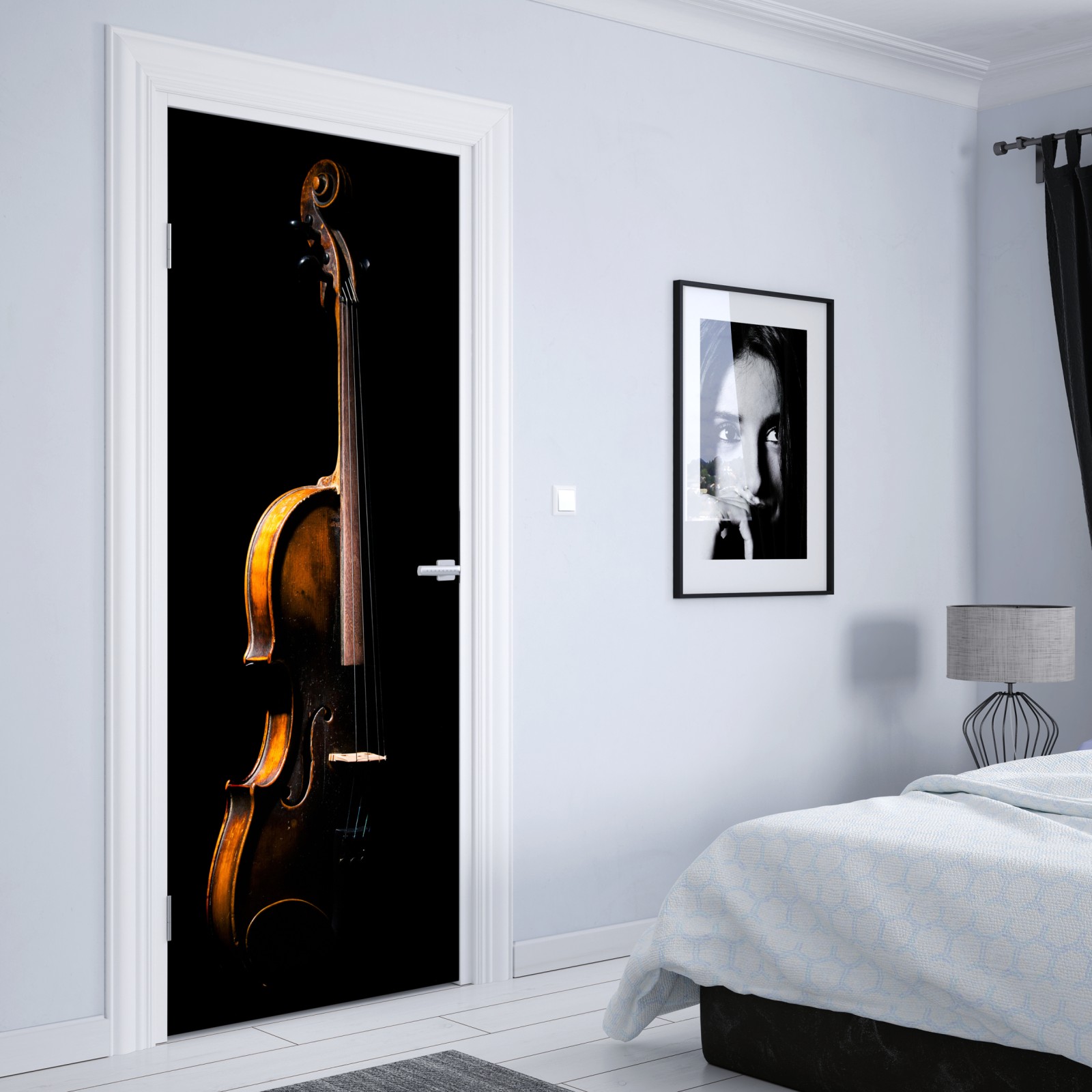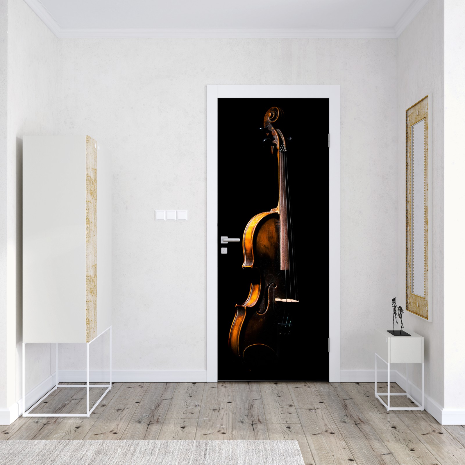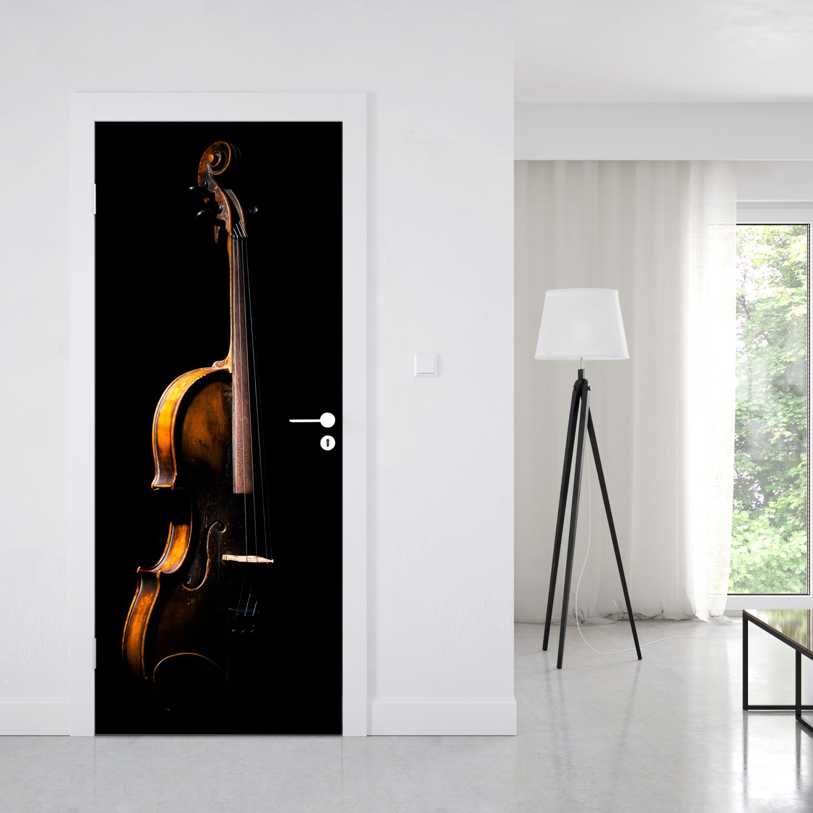 Türaufkleber elegante vintage-geige vor schwarzem hintergrund