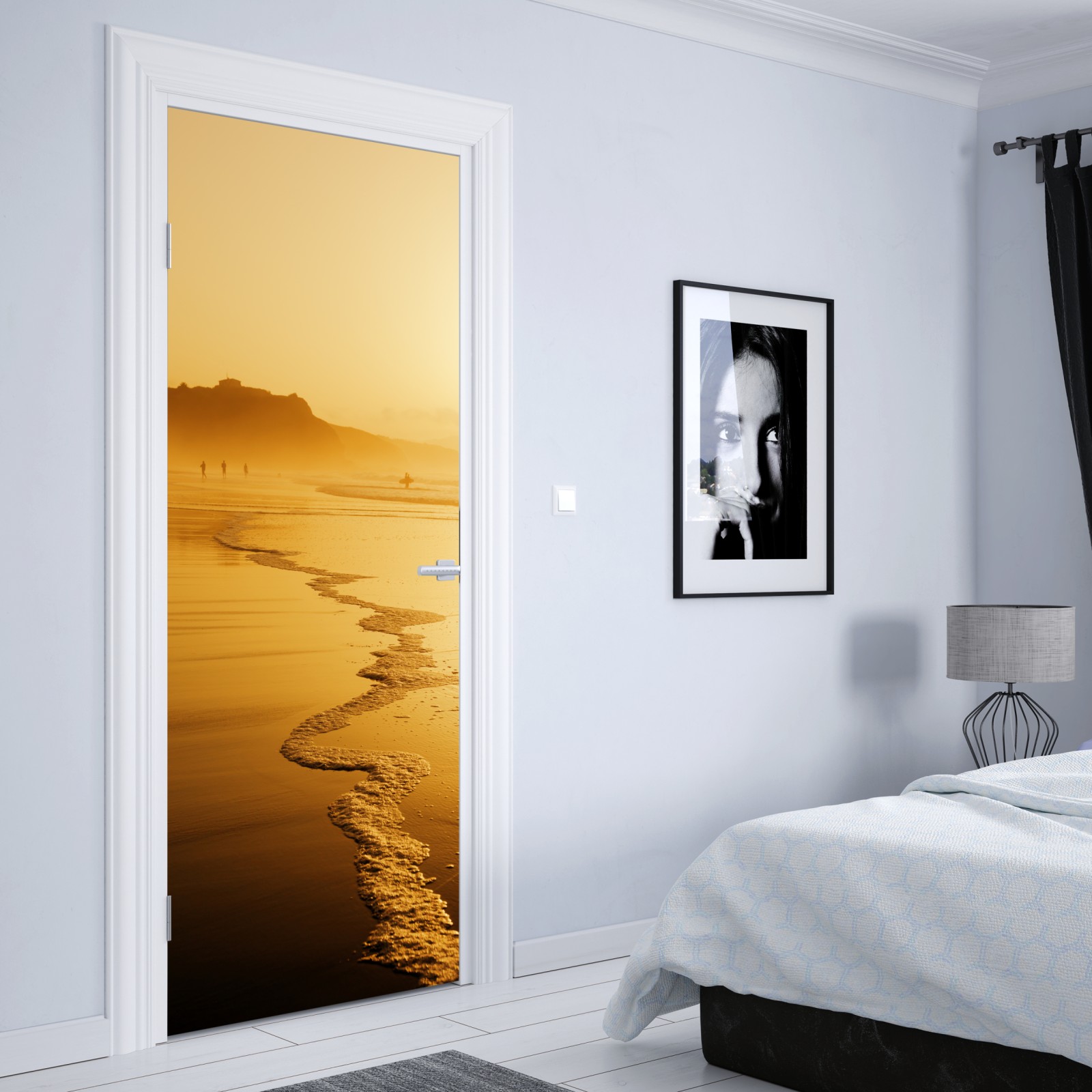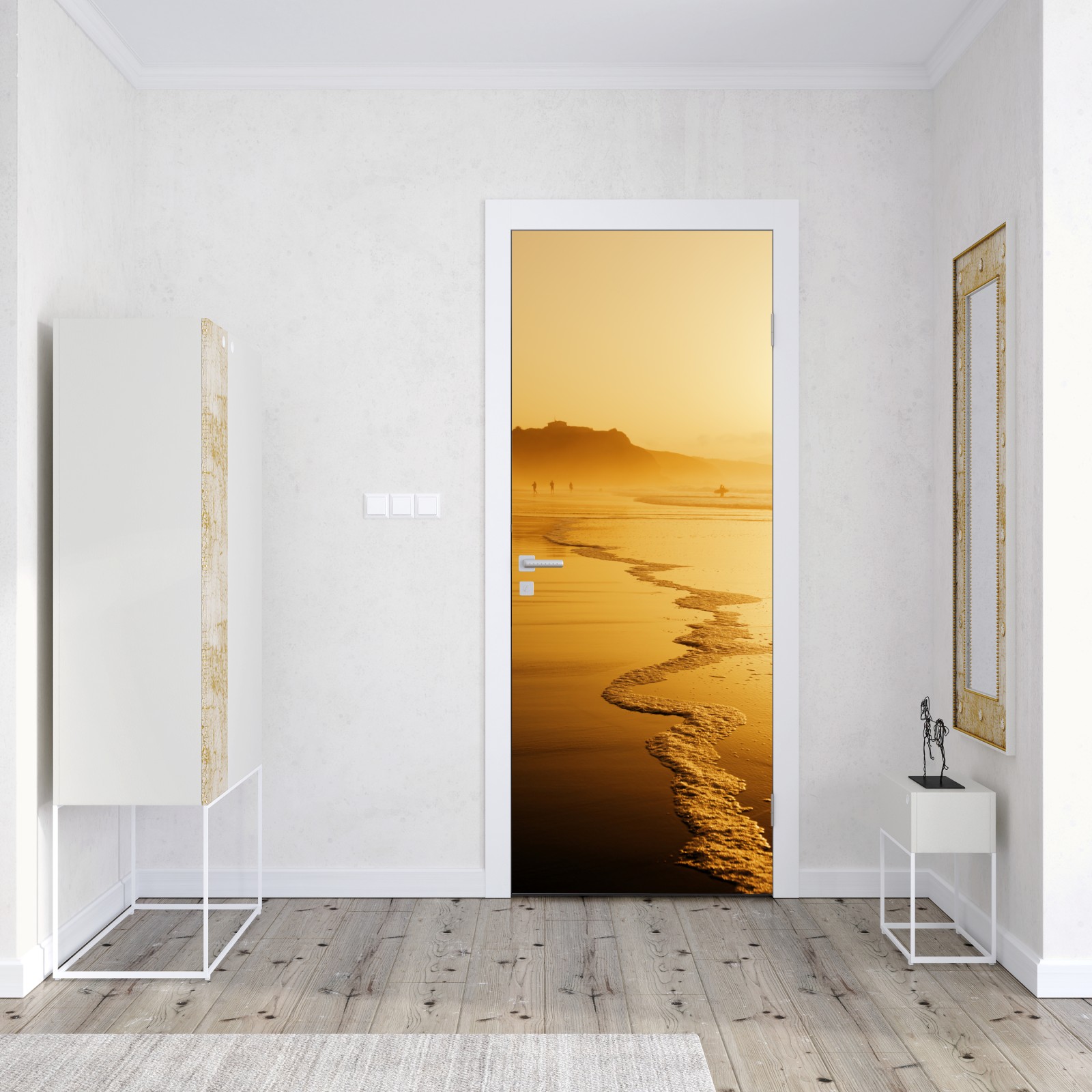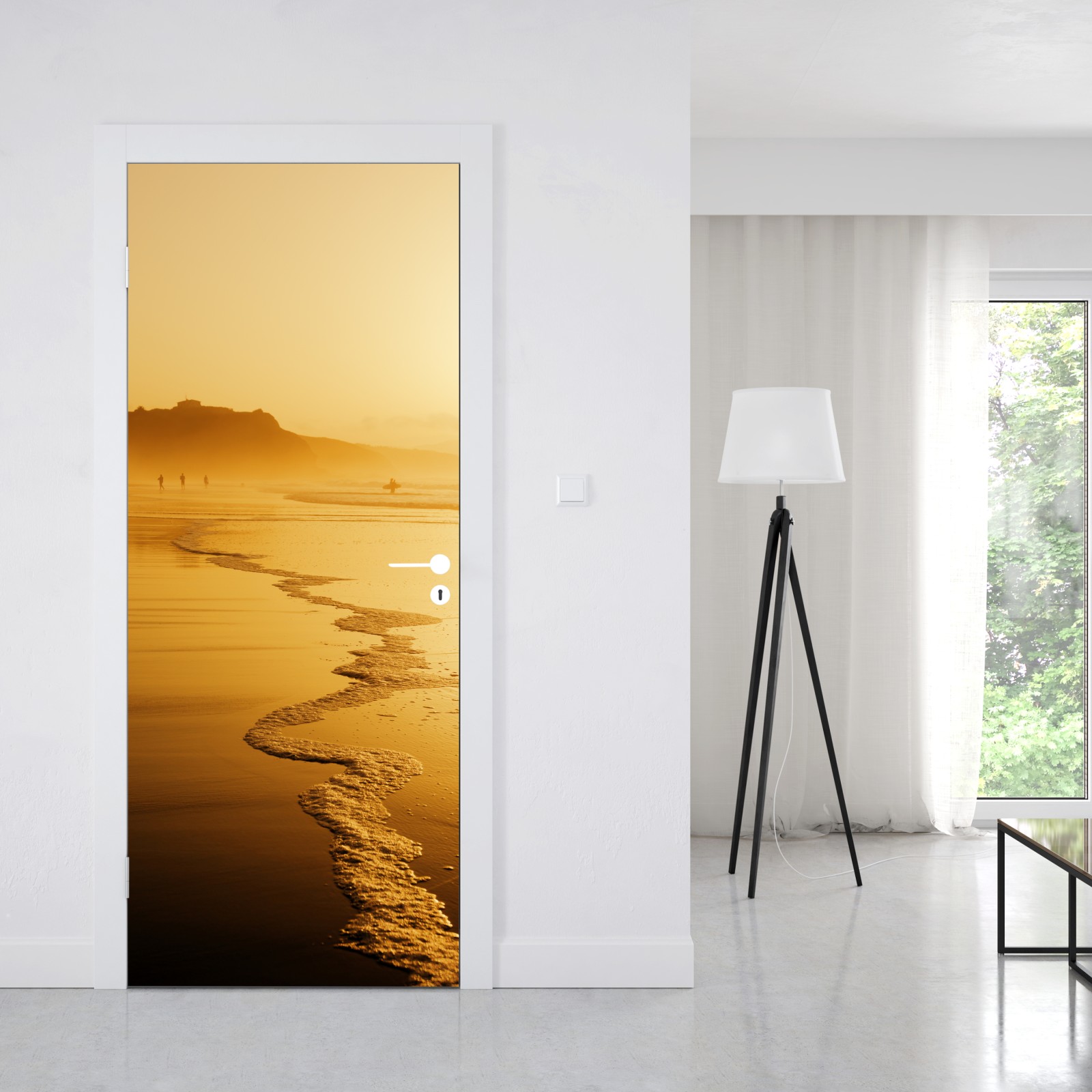Türaufkleber goldener sonnenuntergang am strand von Sopelana