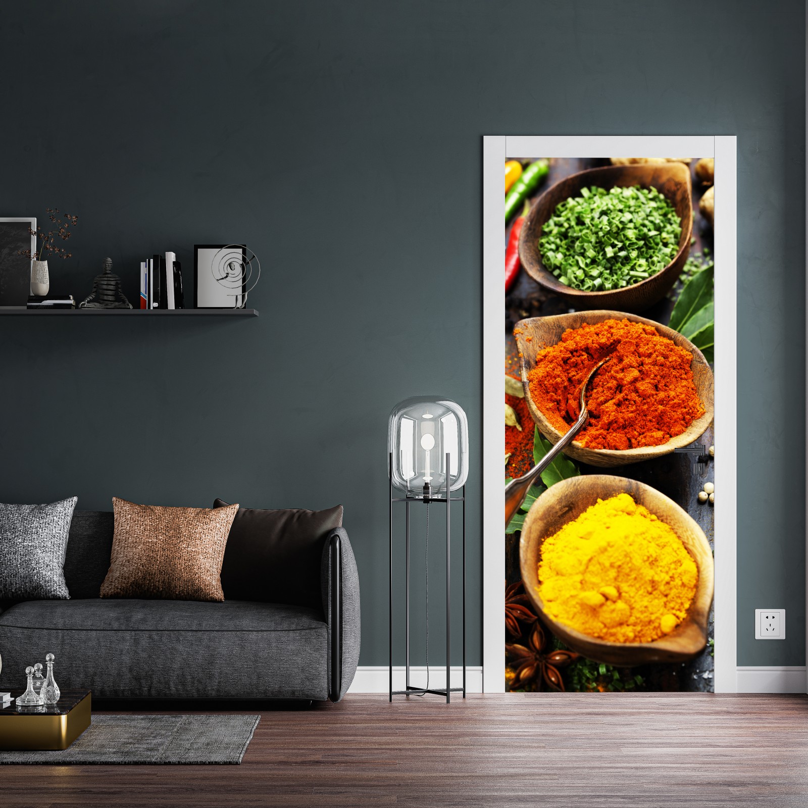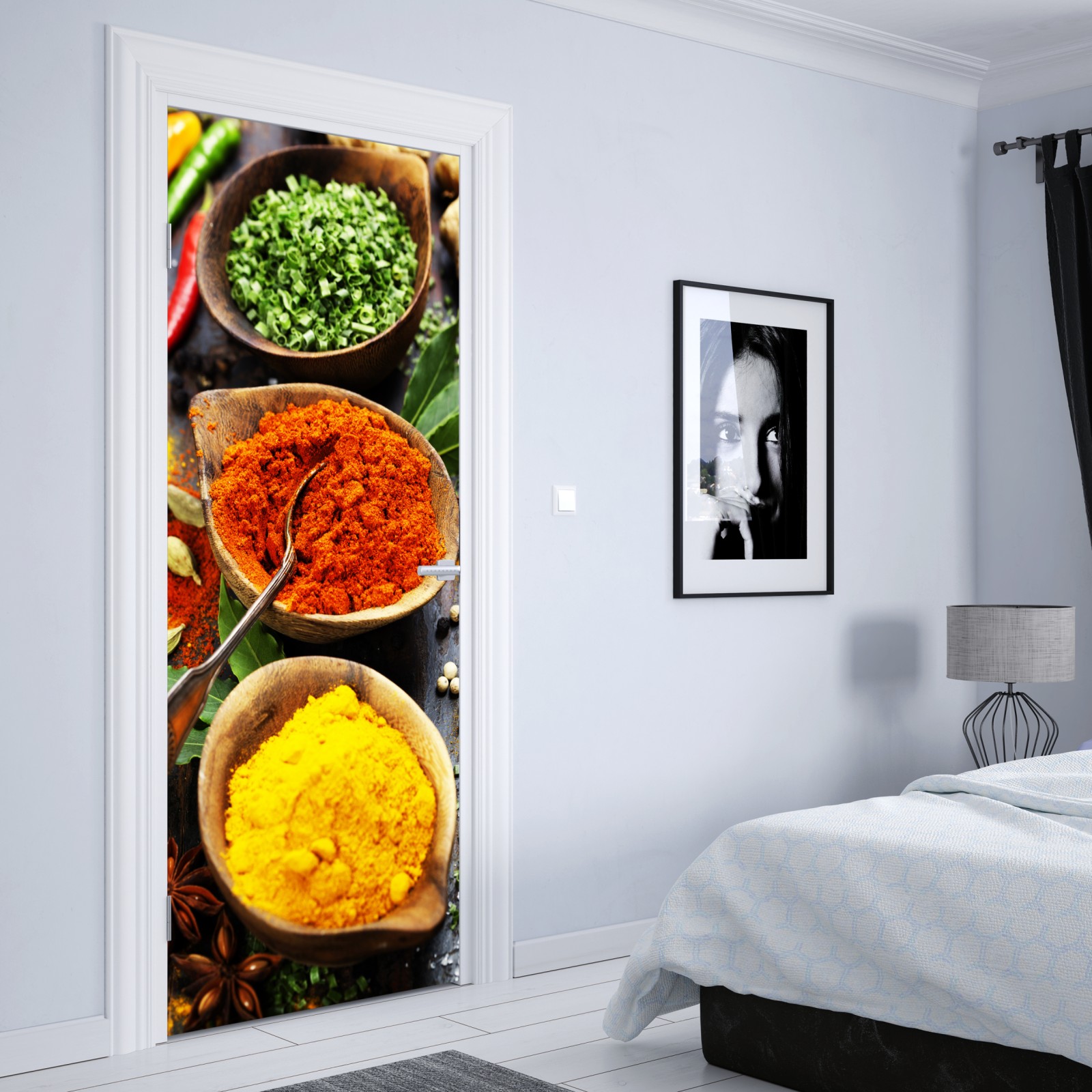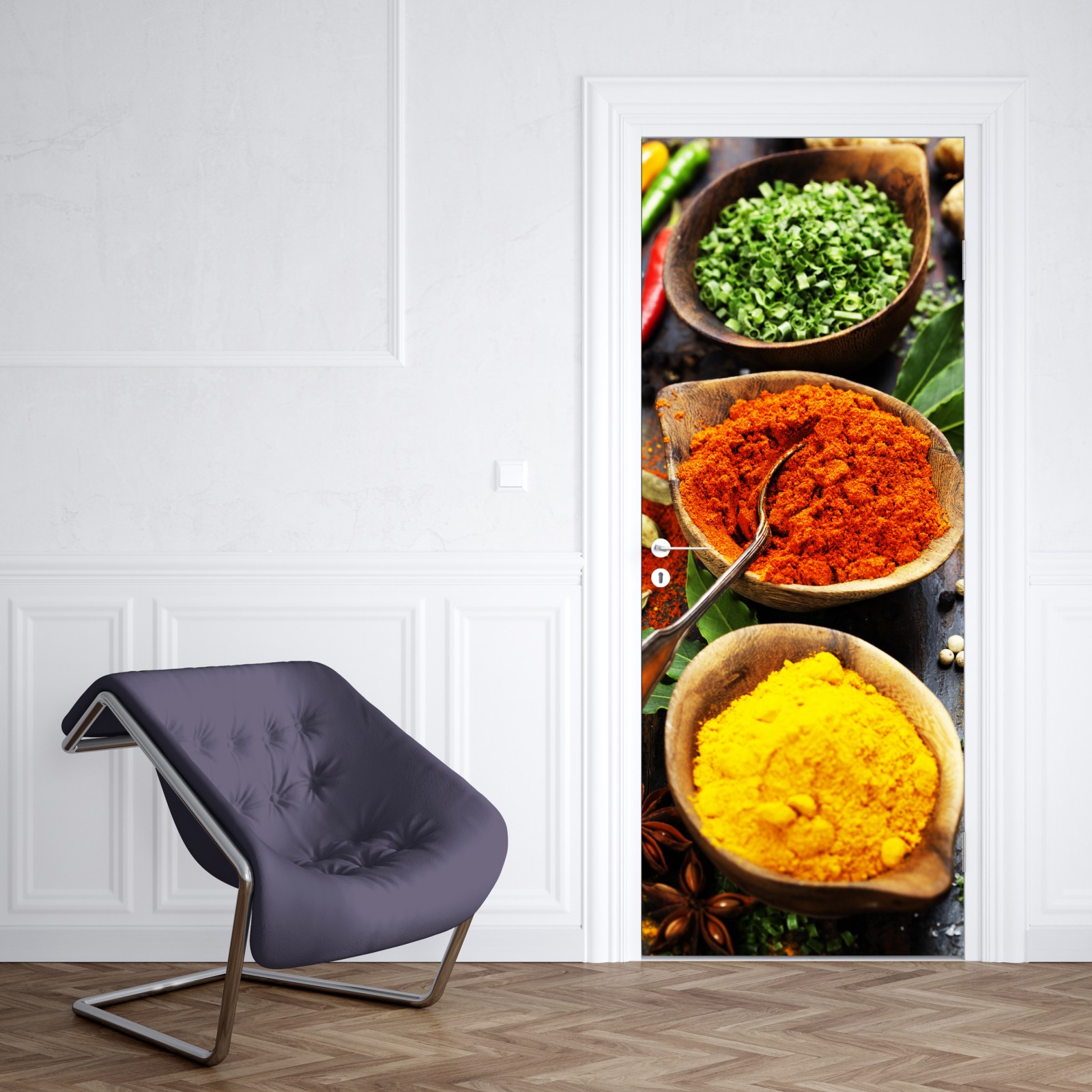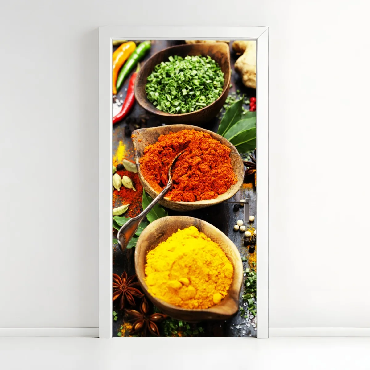 Türaufkleber bunte gewürze und kräuter auf holz