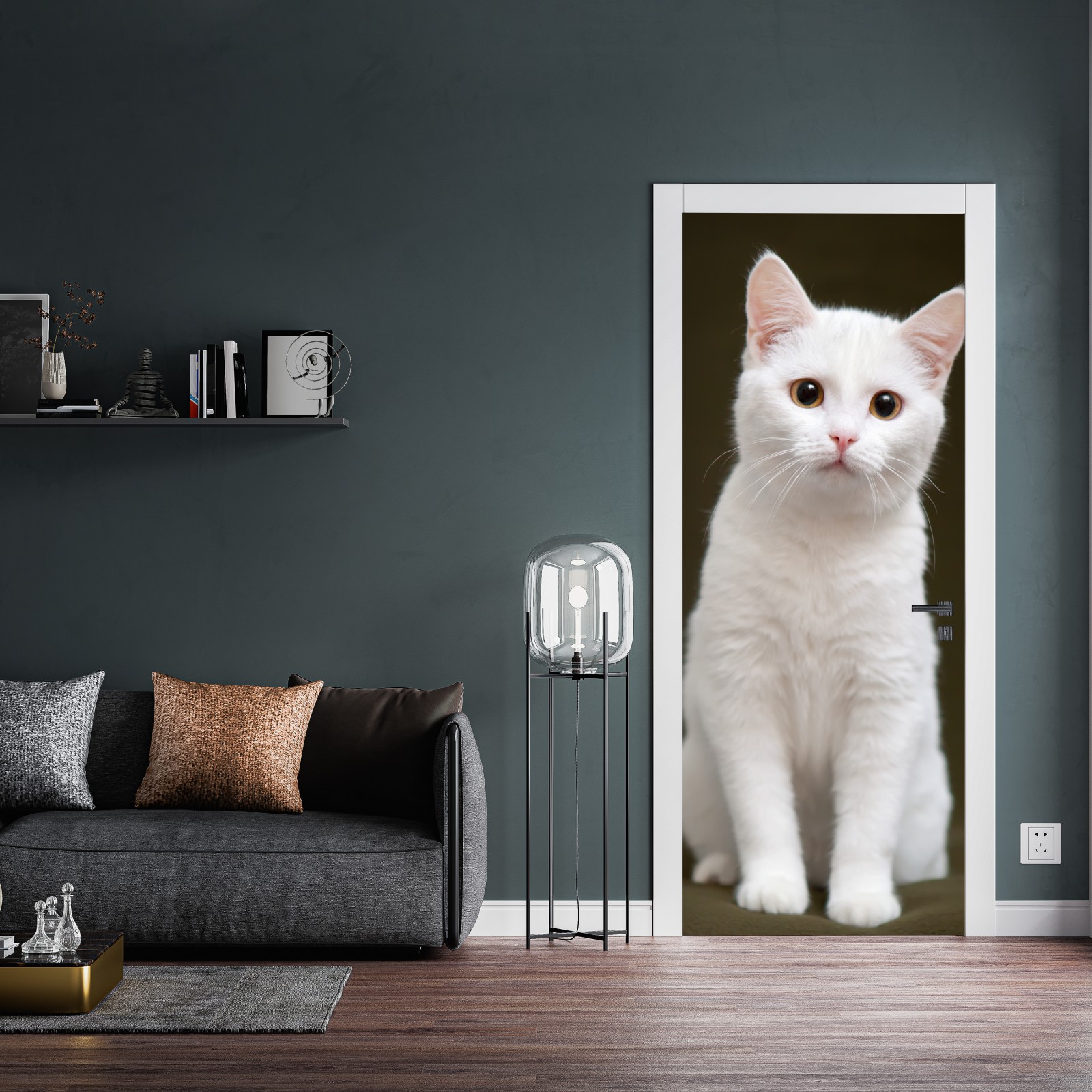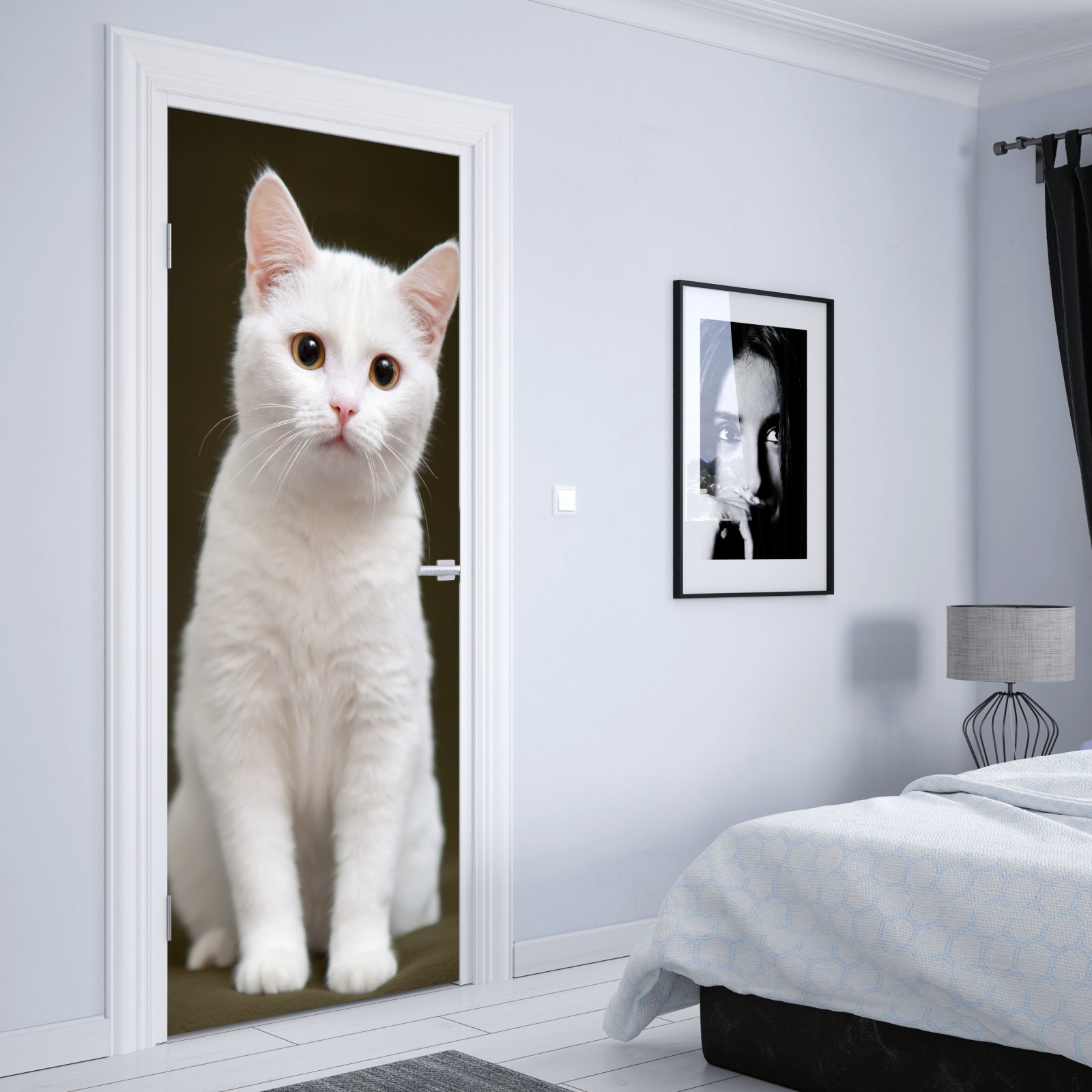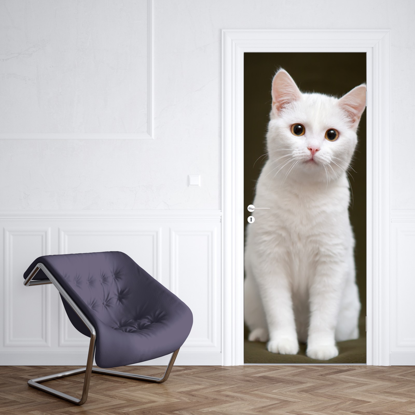 Türaufkleber niedliches porträt einer weißen katze