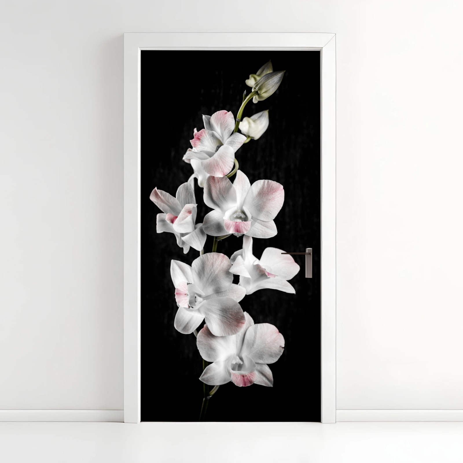 Türaufkleber Weiße und rosa orchidee vor schwarzem hintergrund