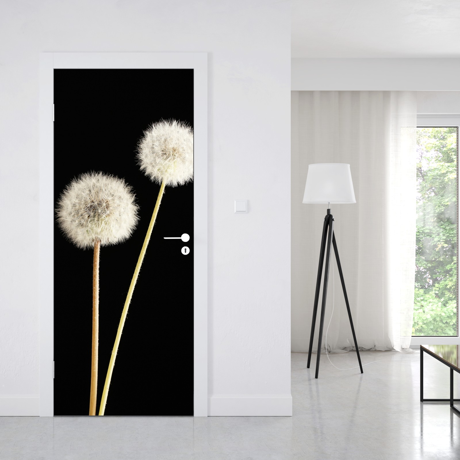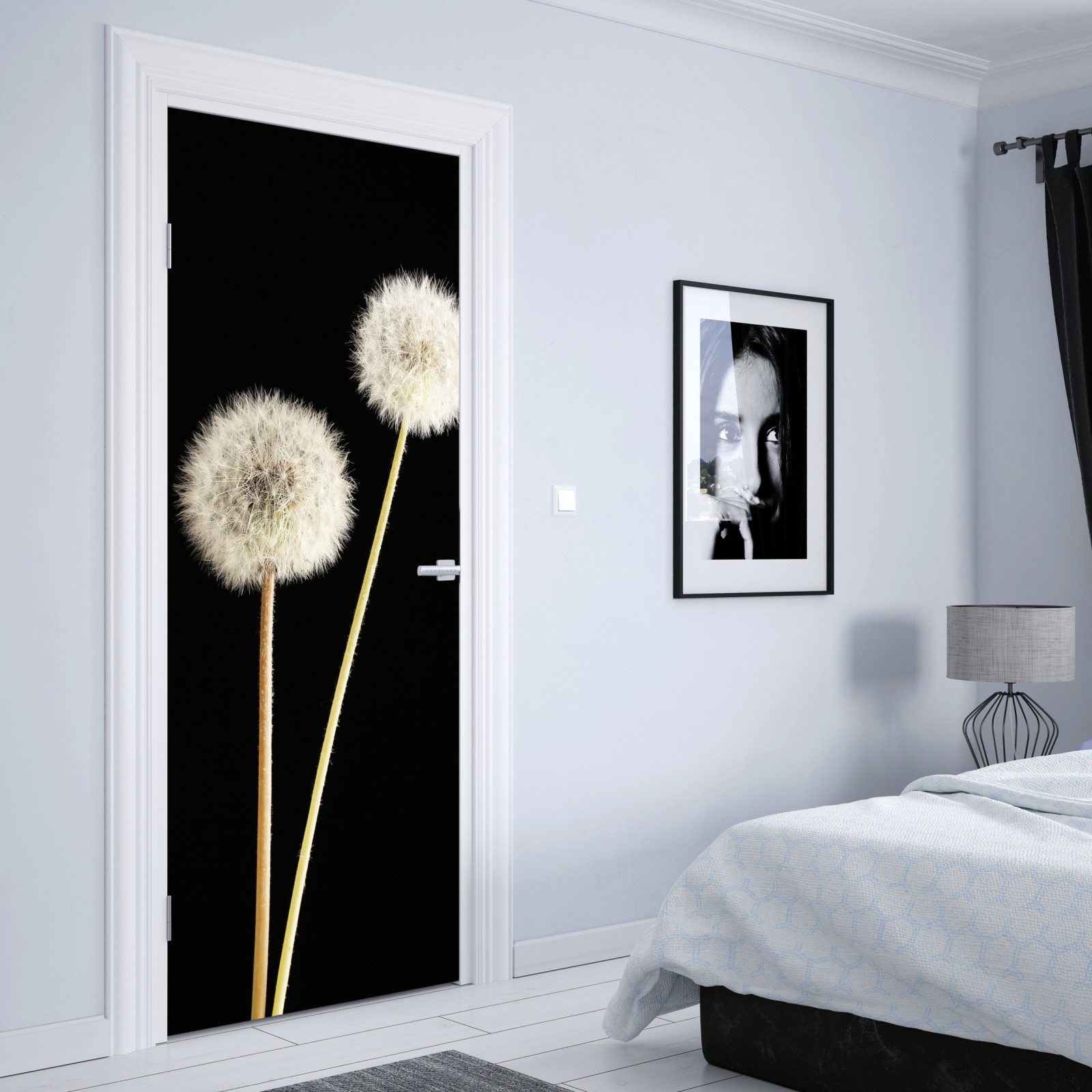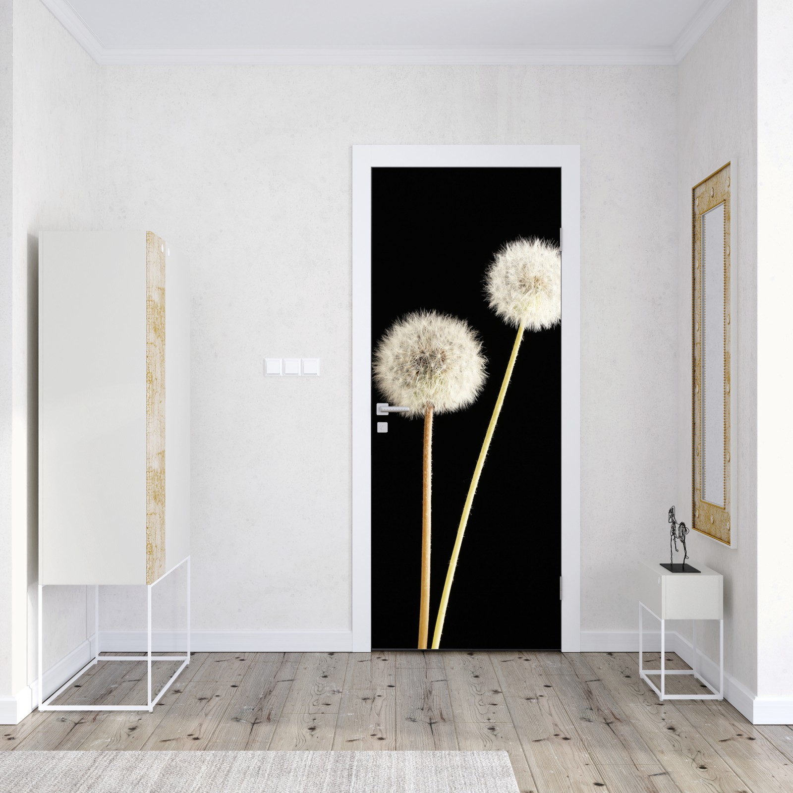 Türaufkleber zarte löwenzahnsamen auf schwarzem hintergrund