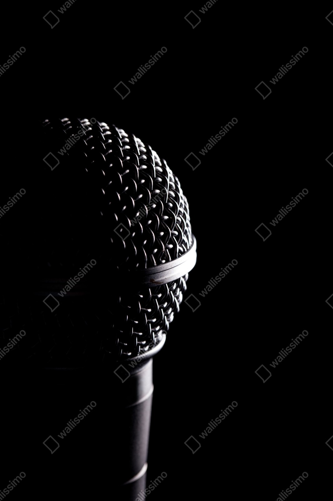 Setzen Sie ein markantes, minimalistisches Statement in Ihrem Raum mit dieser dramatischen Nahaufnahme eines Mikrofons, ideal für Musikliebhaber und kreative Studios.