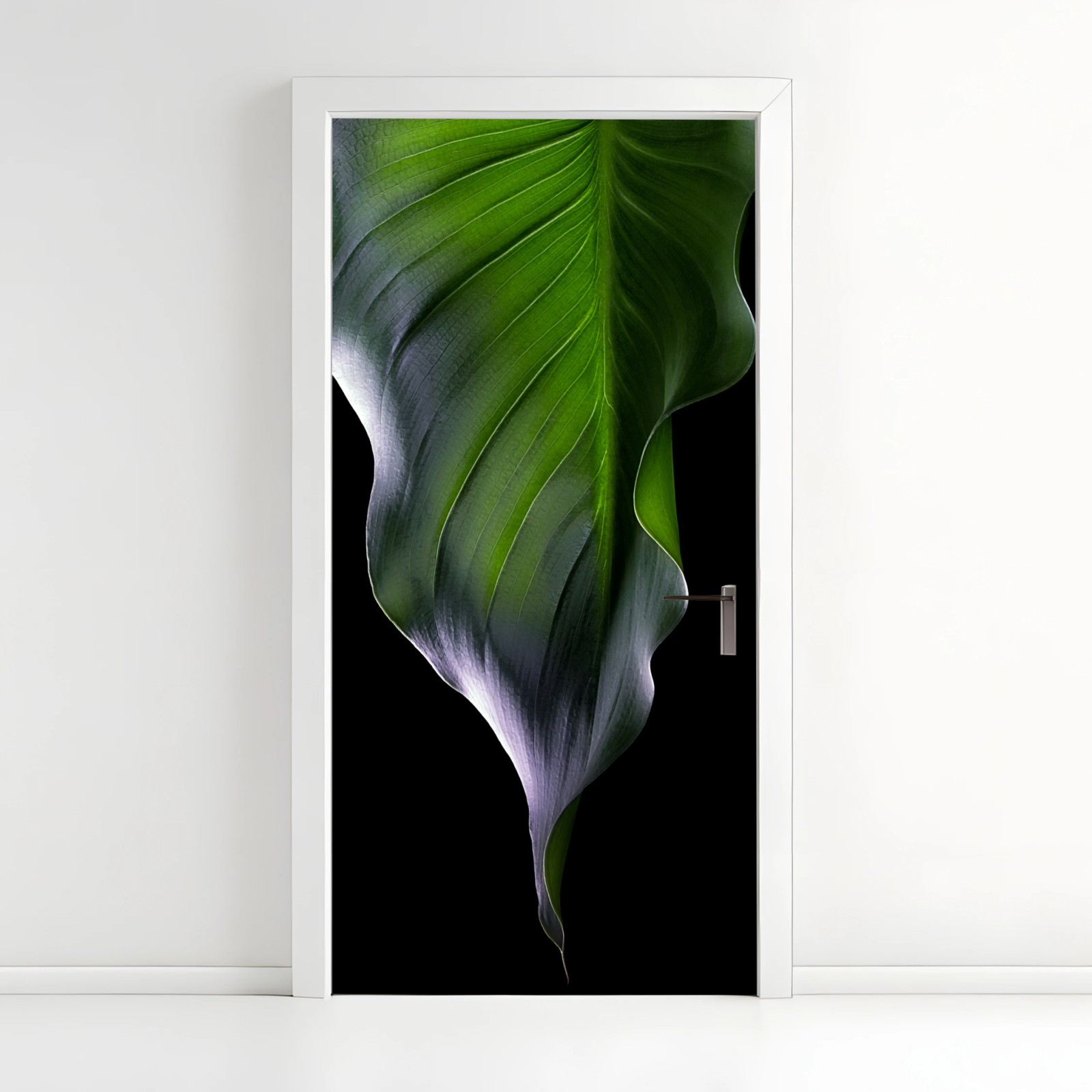 Türaufkleber Elegantes grünes blatt auf schwarzem hintergrund