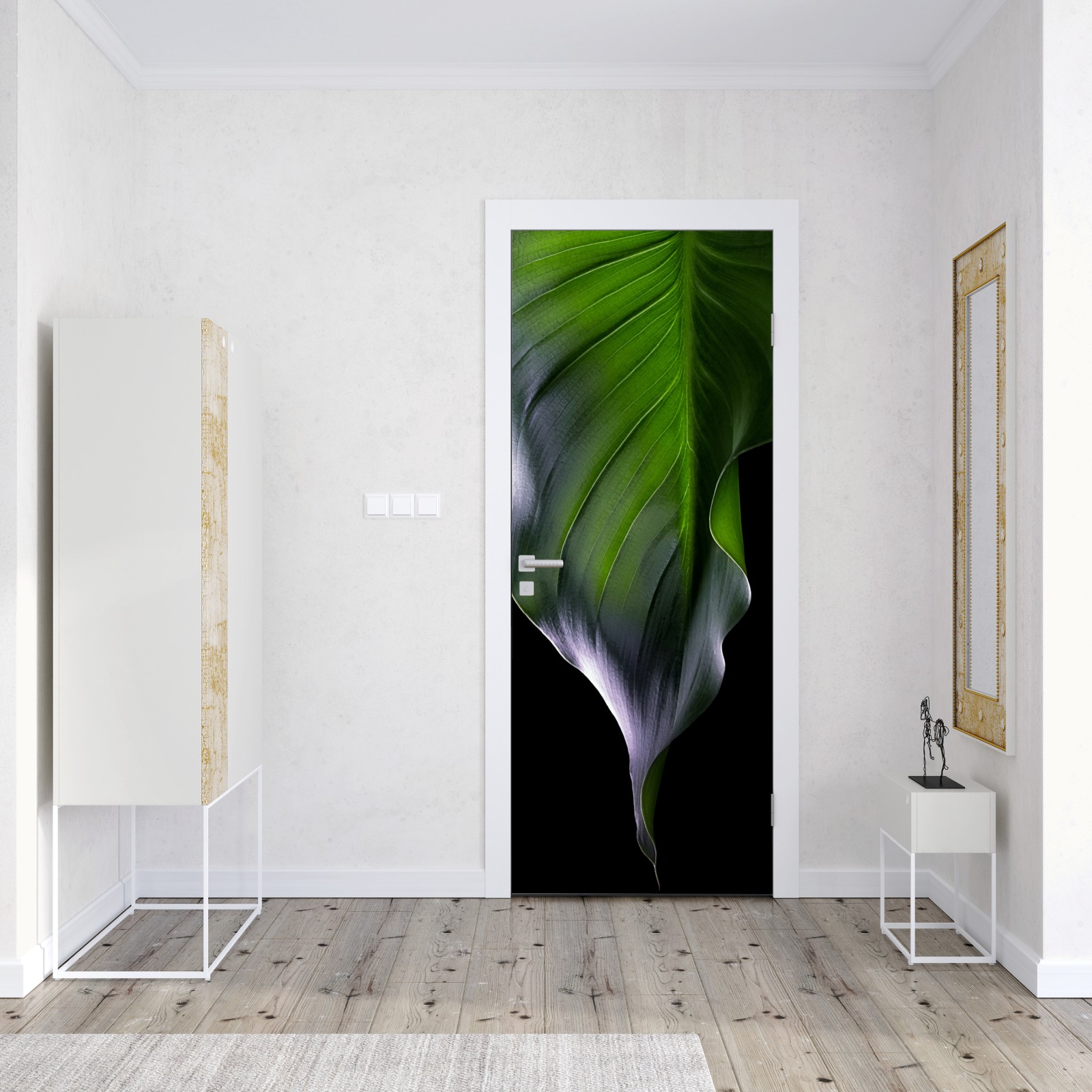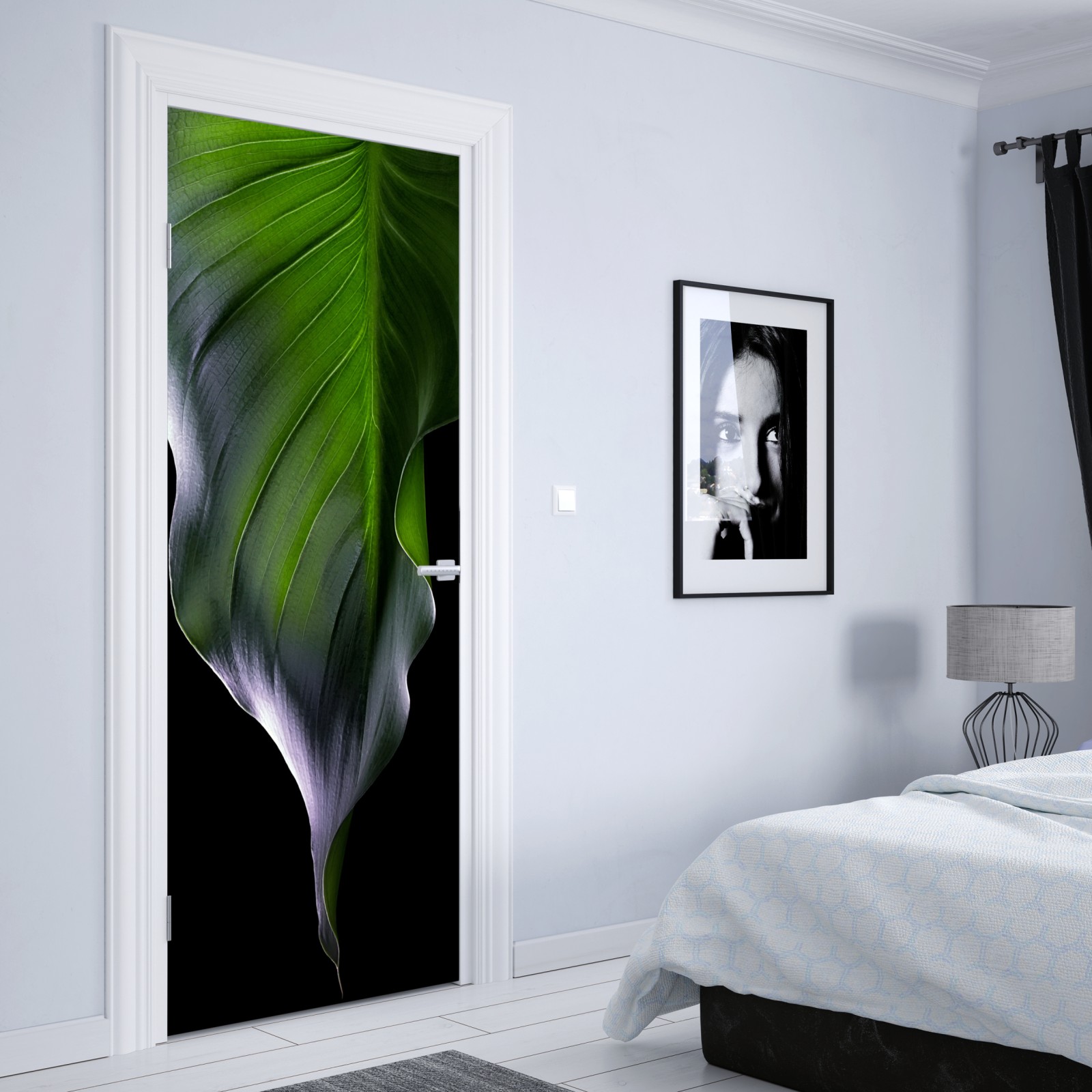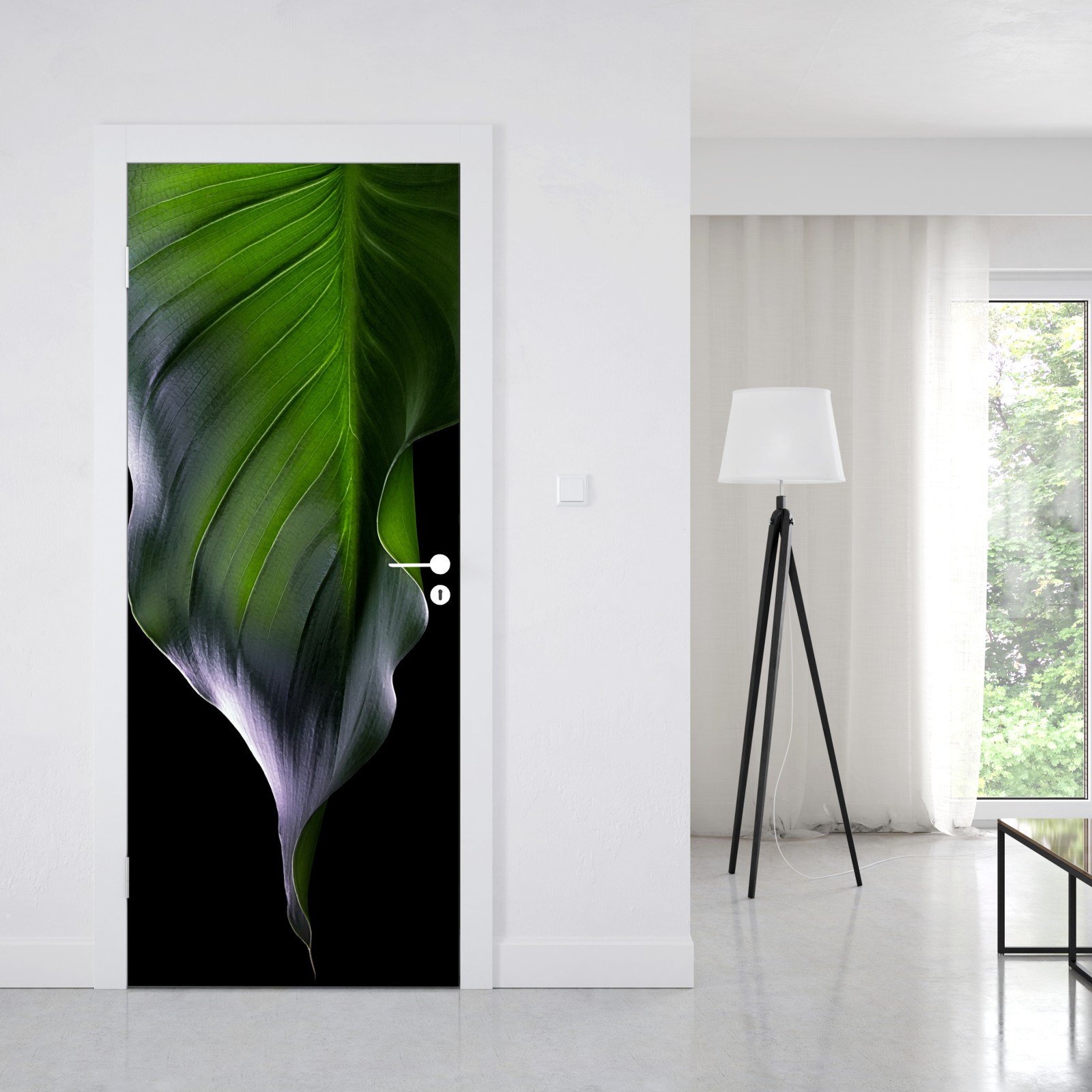 Türaufkleber elegantes grünes blatt auf schwarzem hintergrund