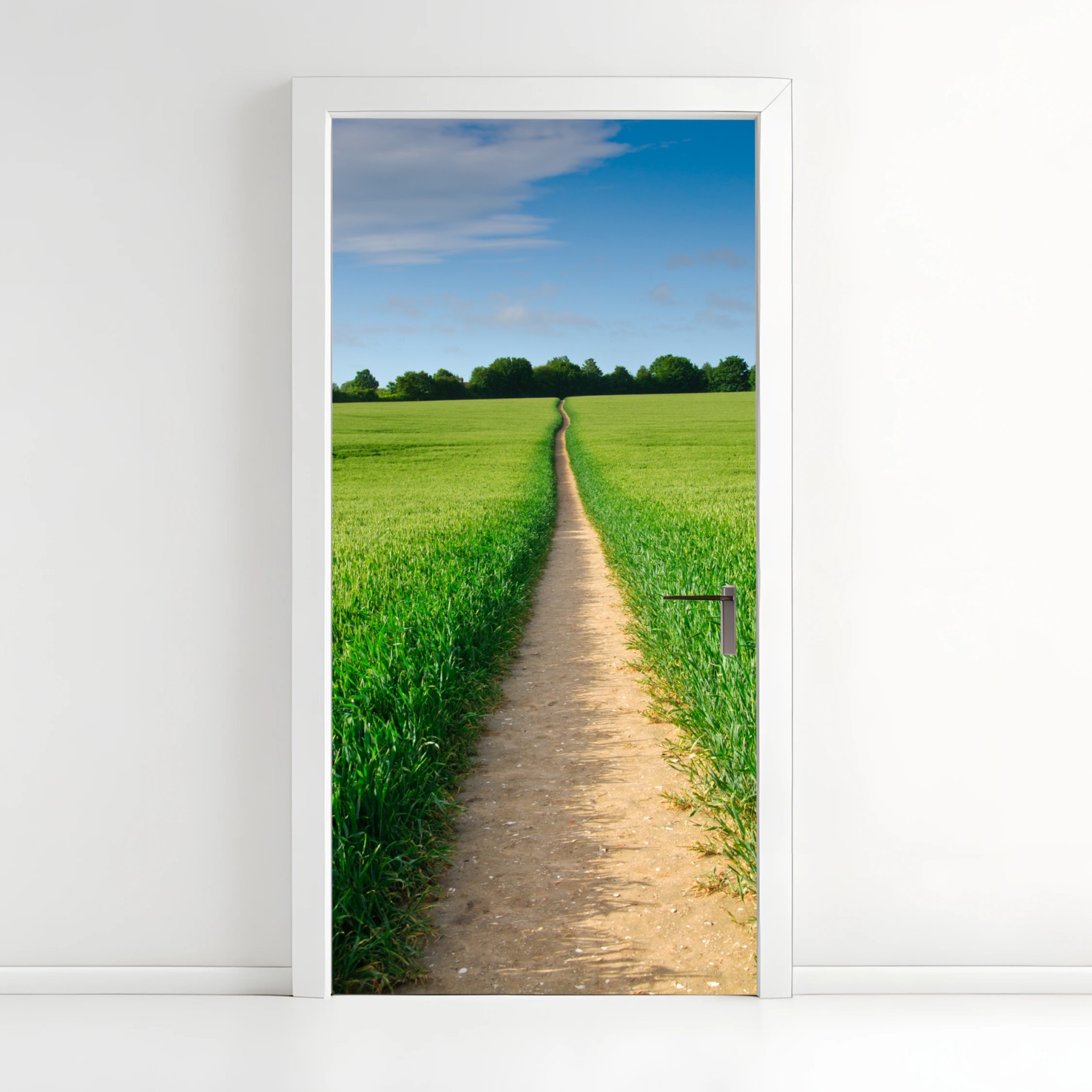 Türaufkleber Sonnenbeschienener weg durch grüne wiese