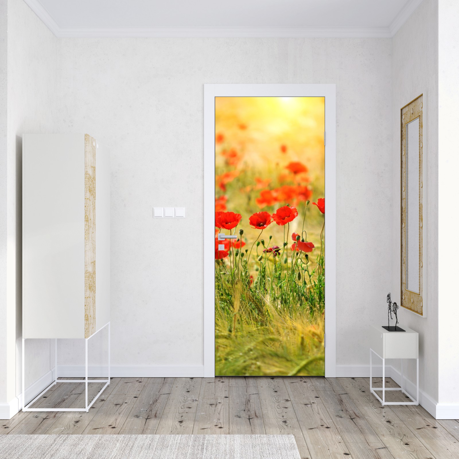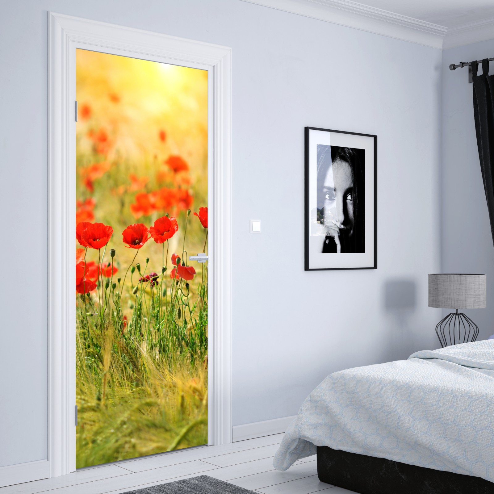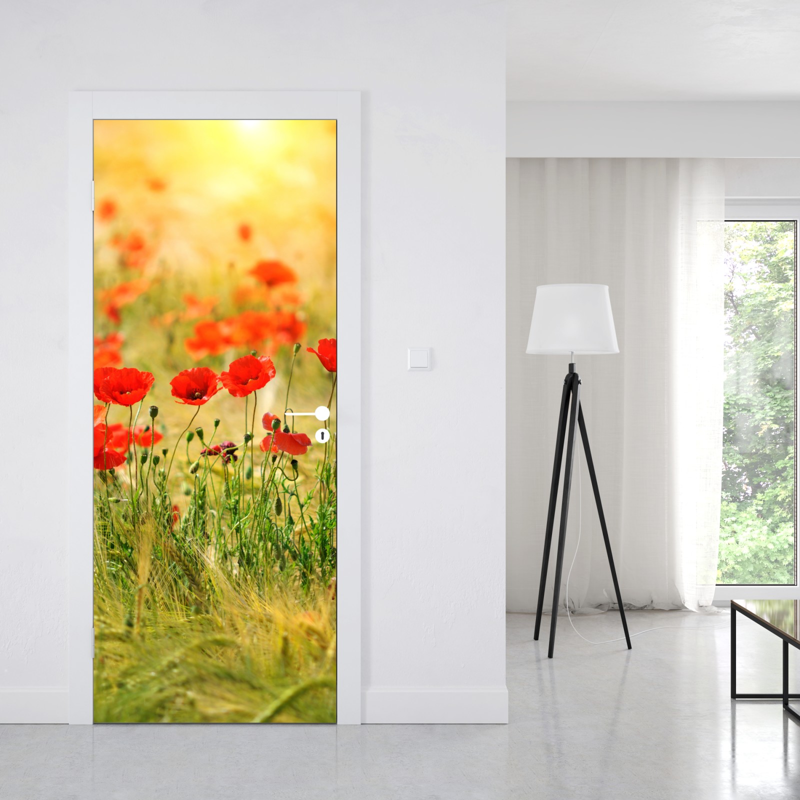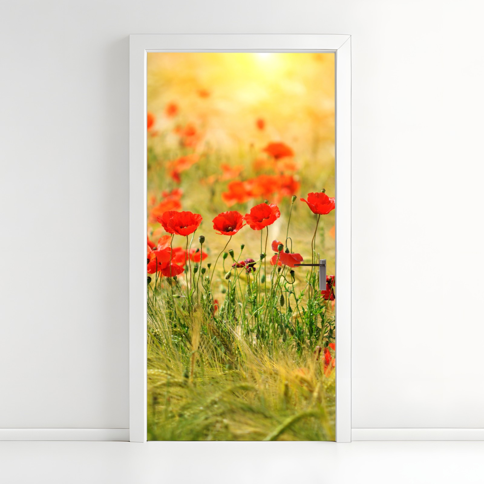 Bringen Sie die Ruhe sommerlicher Felder in Ihr Zuhause mit diesem lebendigen Bild roter Mohnblumen, das Wärme und natürliche Schönheit ausstrahlt.