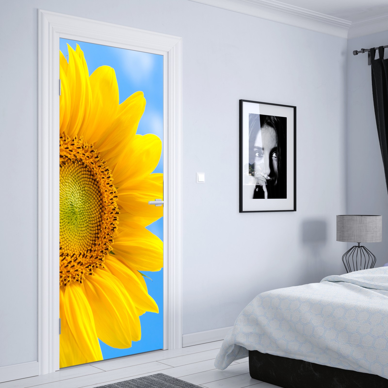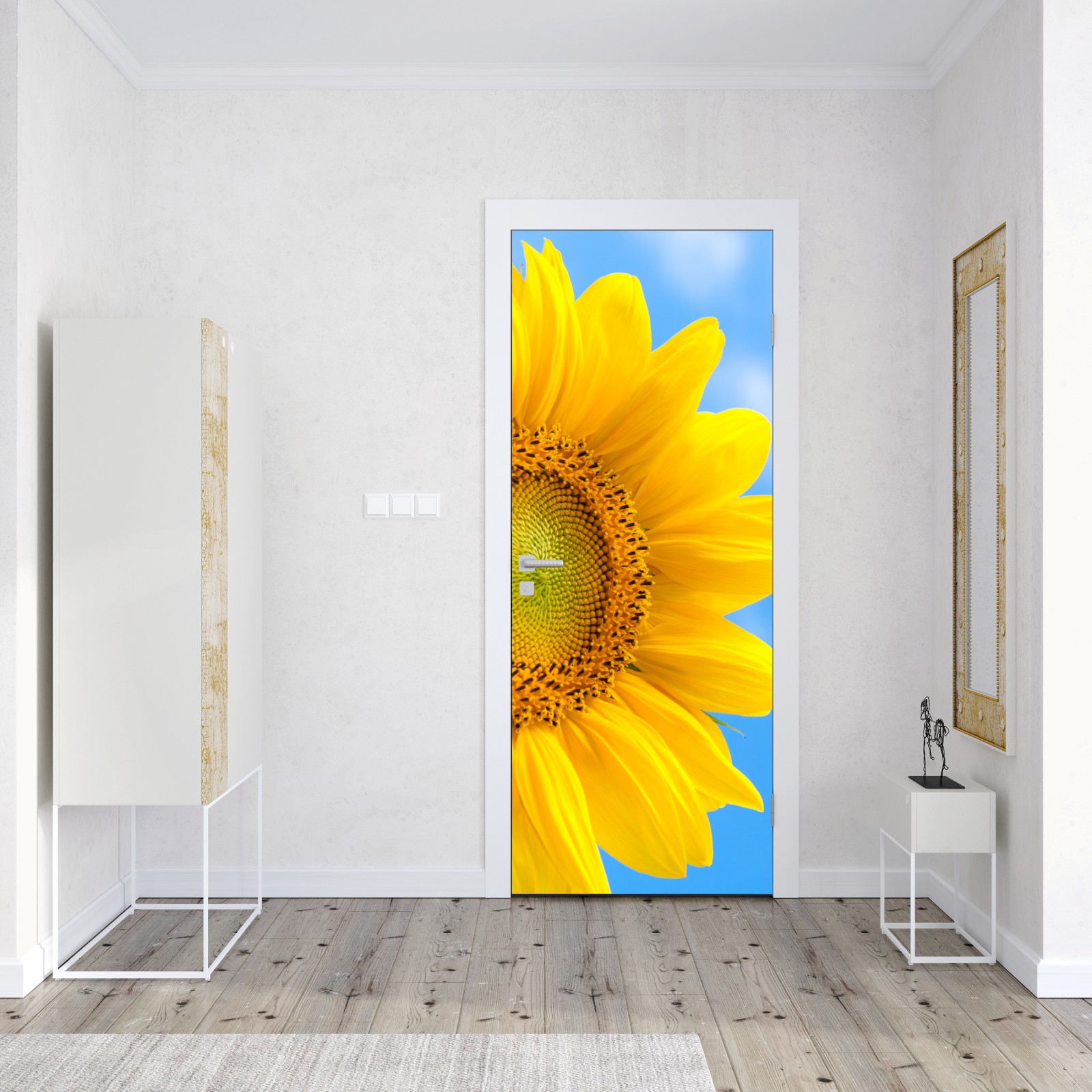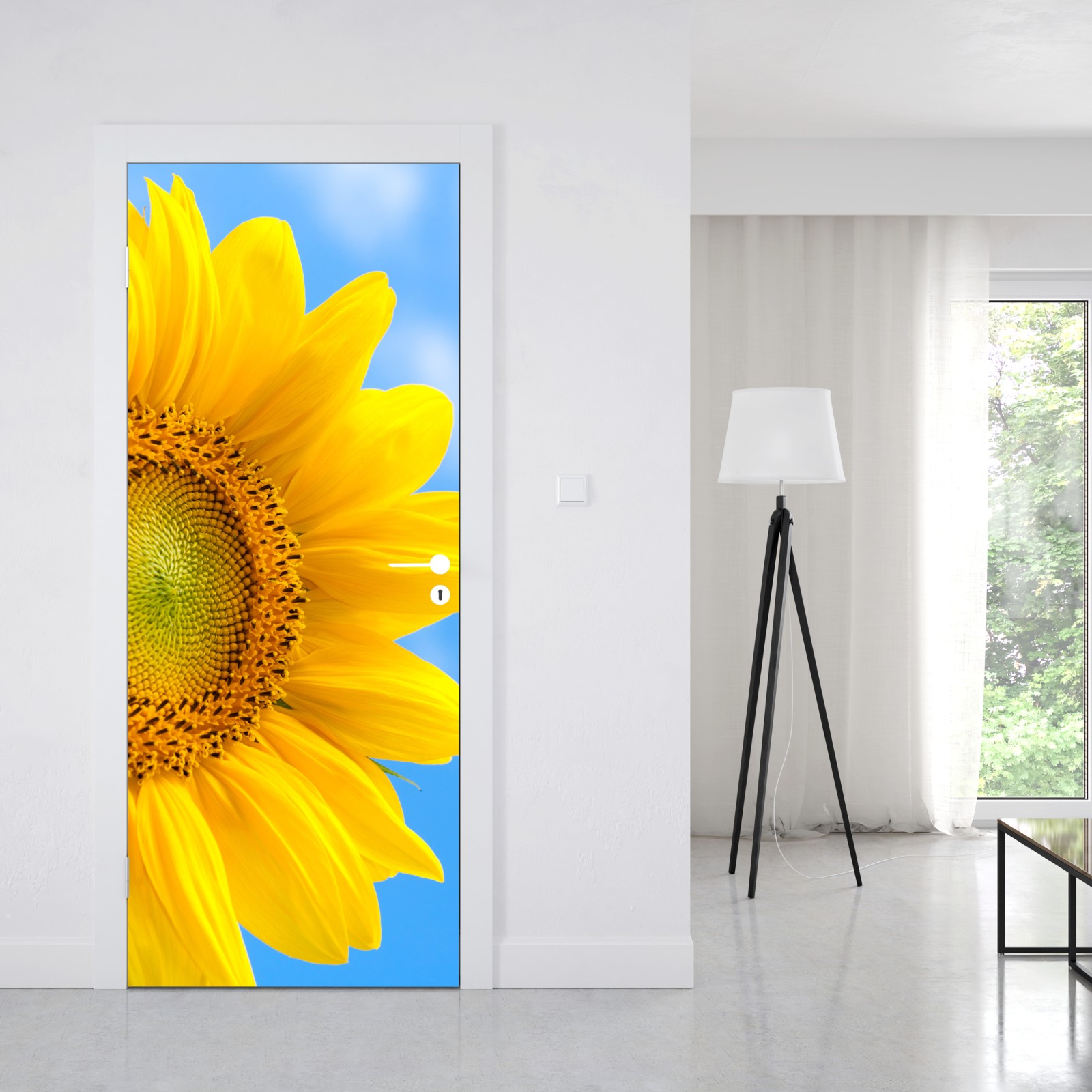 Türaufkleber leuchtende sonnenblume vor blauem himmel